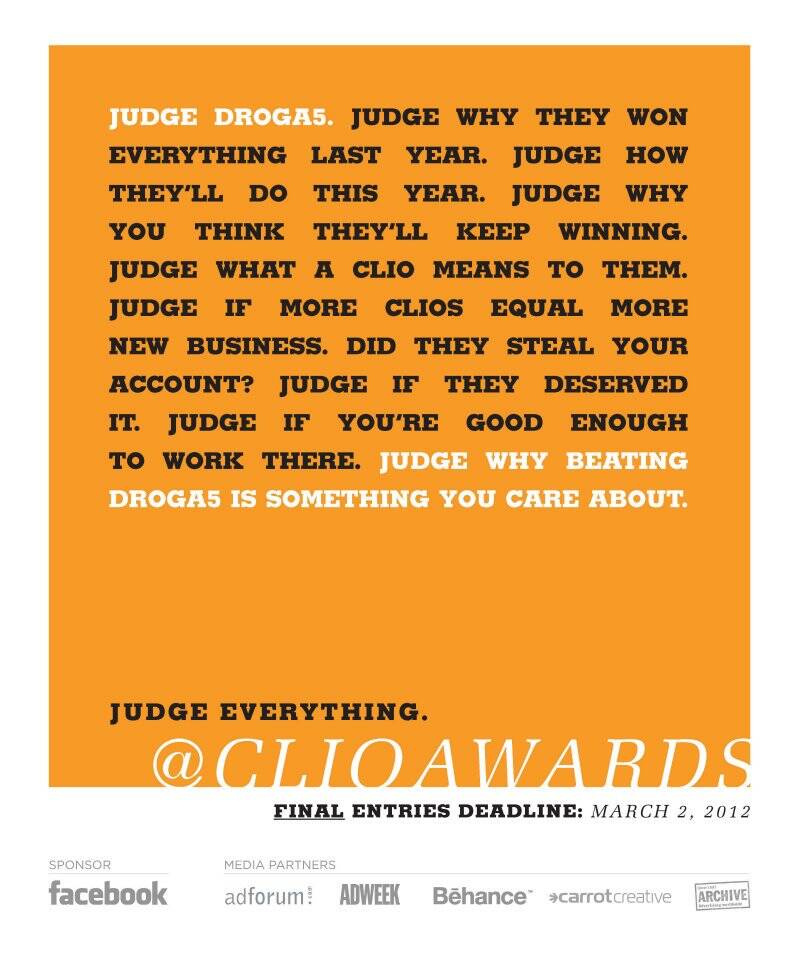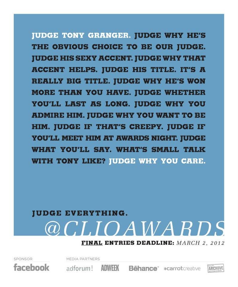 Judge Tony Granger, Judge the Clios, Judge Droga5, Judge your brand, Judge your agency