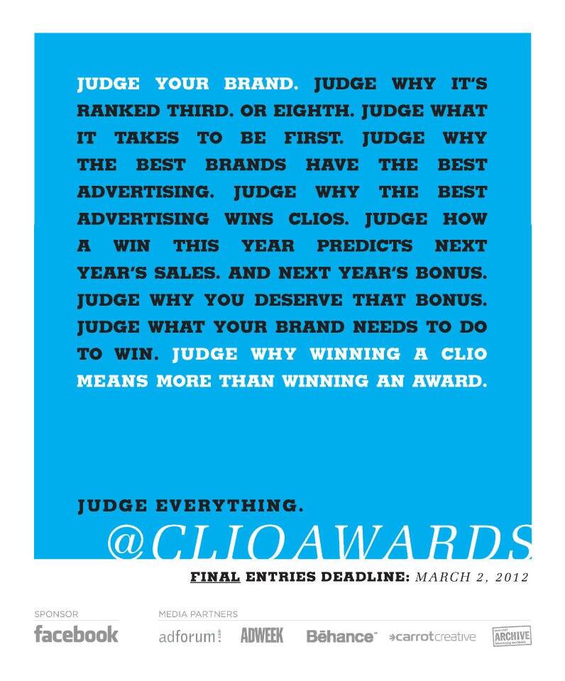This professional campaign titled 'Judge Tony Granger, Judge the Clios, Judge Droga5, Judge your brand, Judge your agency' was published in United States in February, 2012. It was created for the brand: Clio Awards, . This Print medium campaign is related to the Professional Services industry and contains 5 media assets. It was submitted almost 14 years ago.
