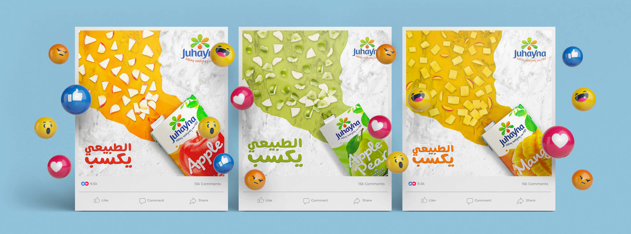 These social media designs enhance our campaign, visually reinforcing Juhayna's 100% natural products with captivating content.
