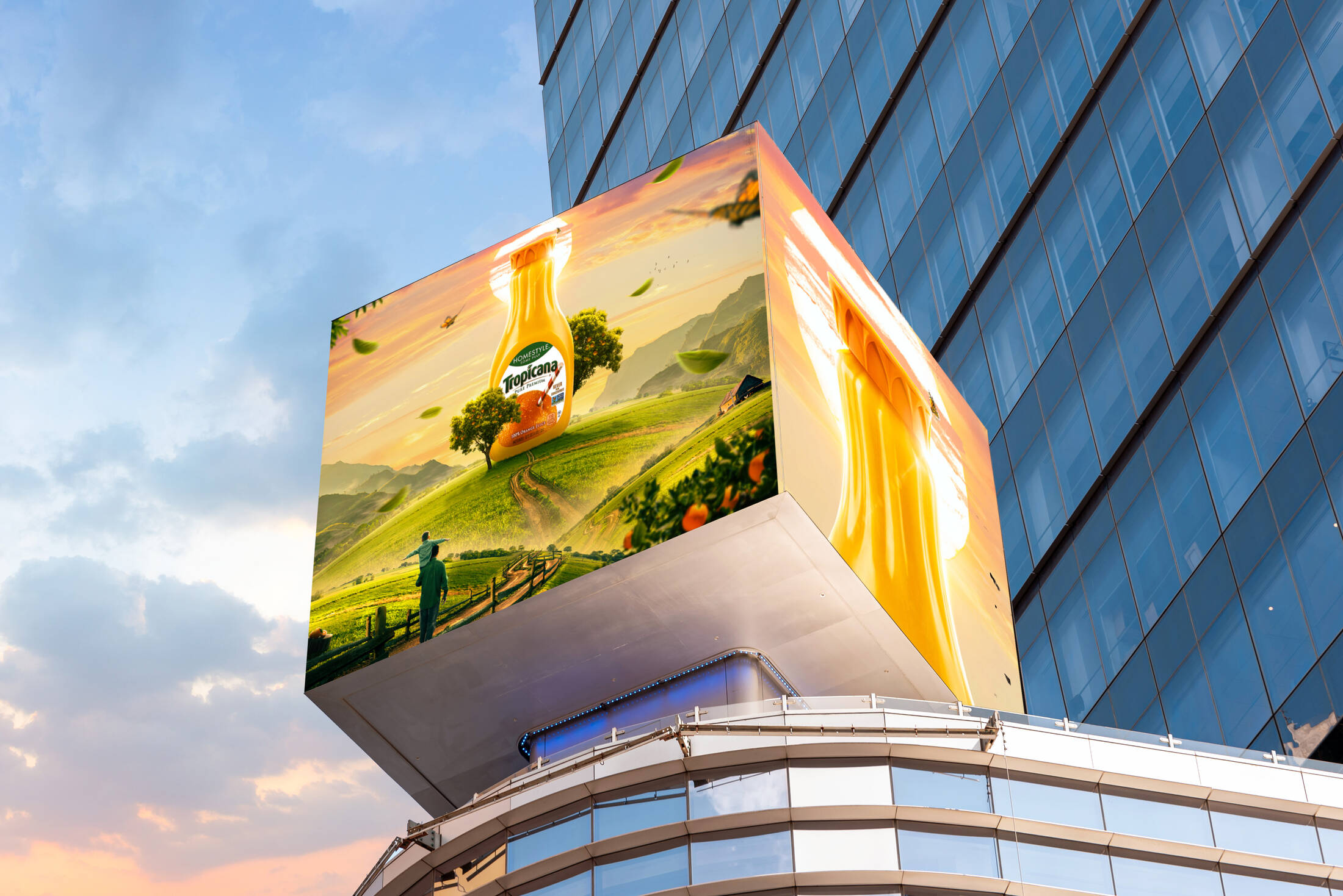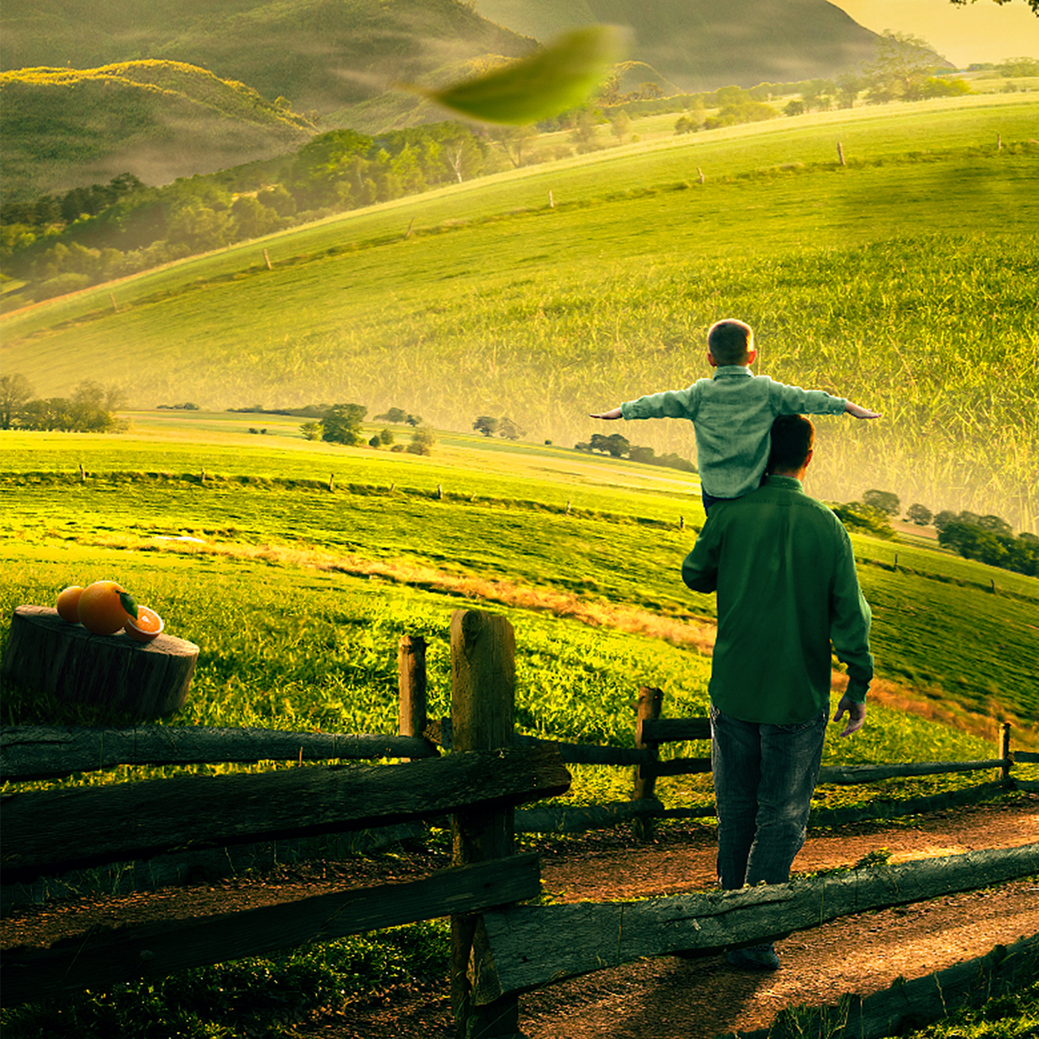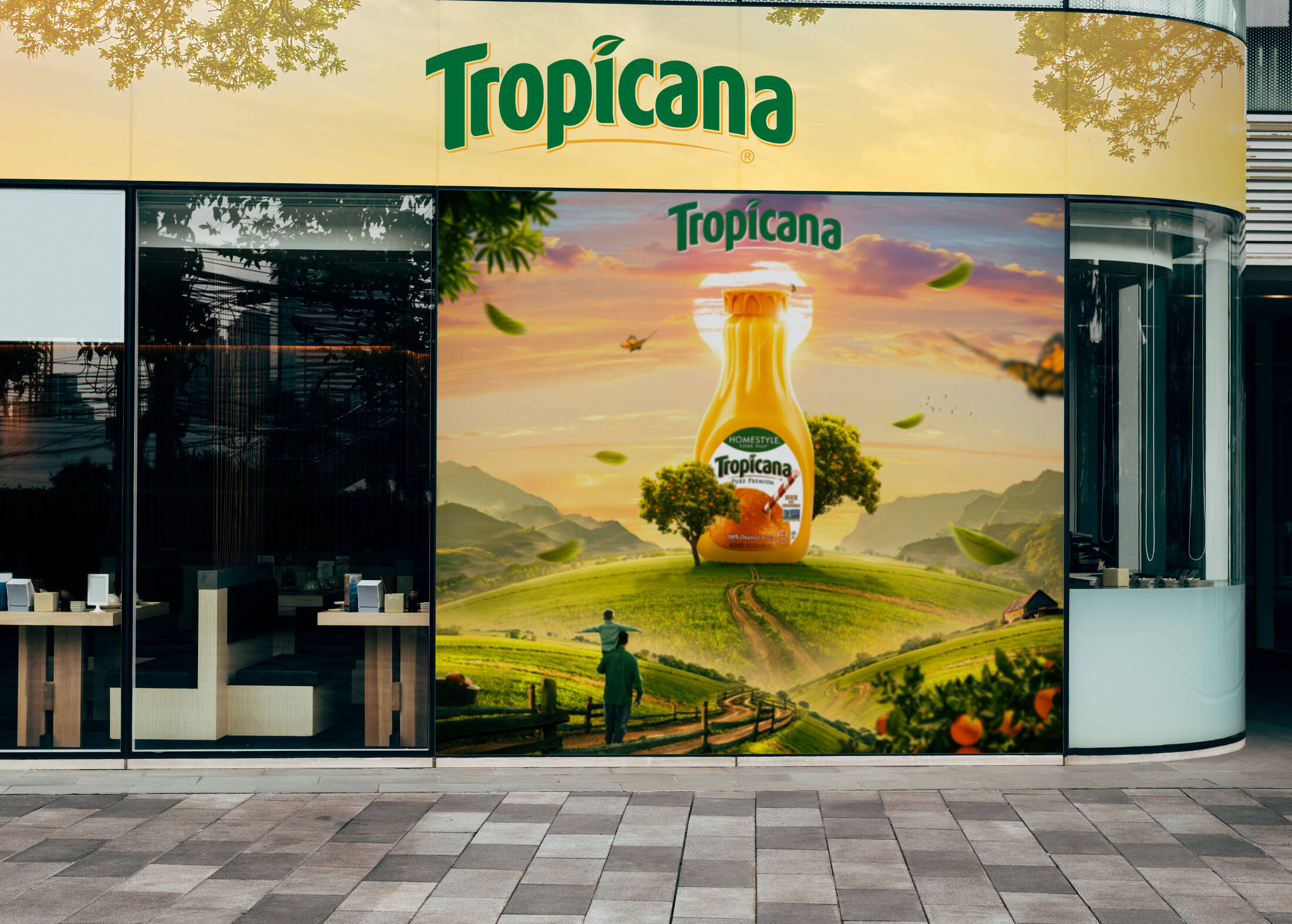 I wanted to convey a message from this design that the goal of the campaign is to show that Tropicana juice is 100% natural juice, and I wanted to show how happy people and children are with this drink and how enjoyable the journey to reach it is.