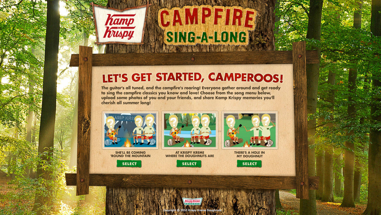 This professional campaign titled 'Kamp Krispy' was published in United States in July, 2010. It was created for the brand: Krispy Kreme, by ad agency: Intermark. This Digital medium campaign is related to the Confectionery, Snacks industry and contains 1 media asset. It was submitted over 15 years ago.