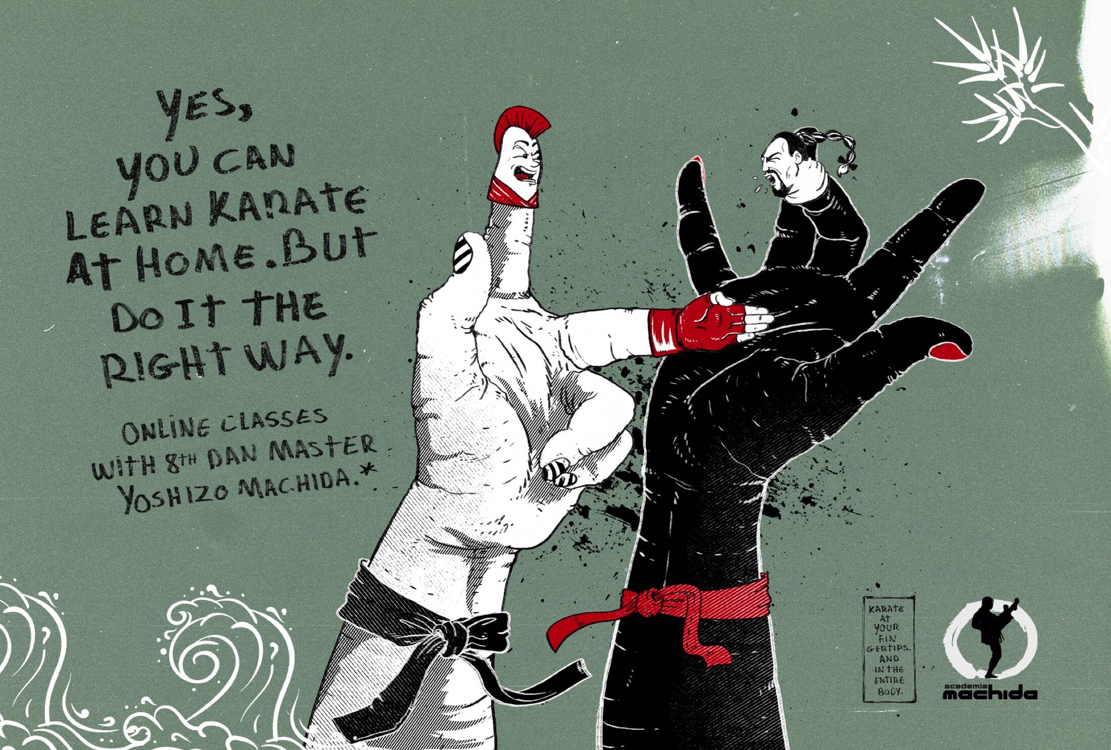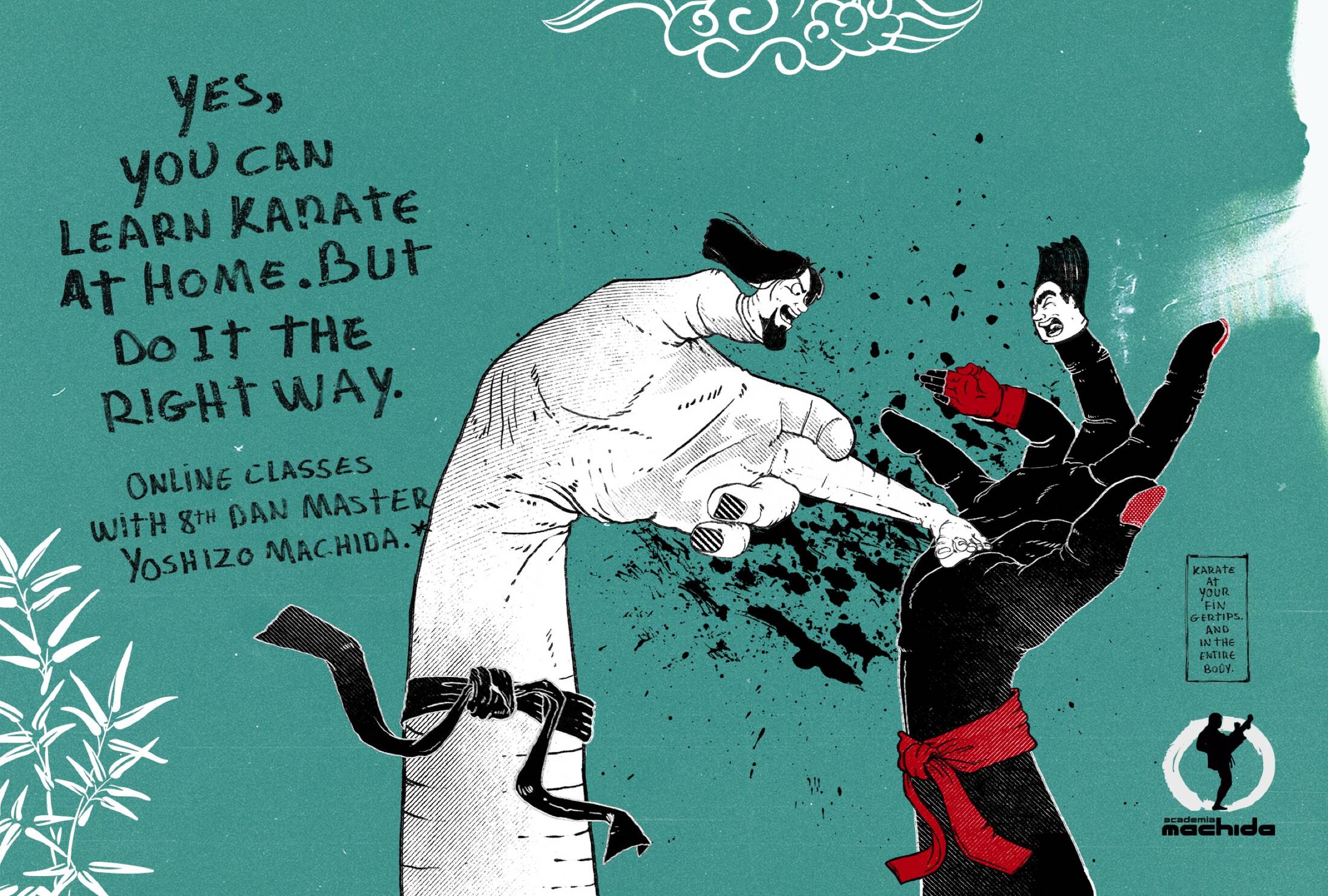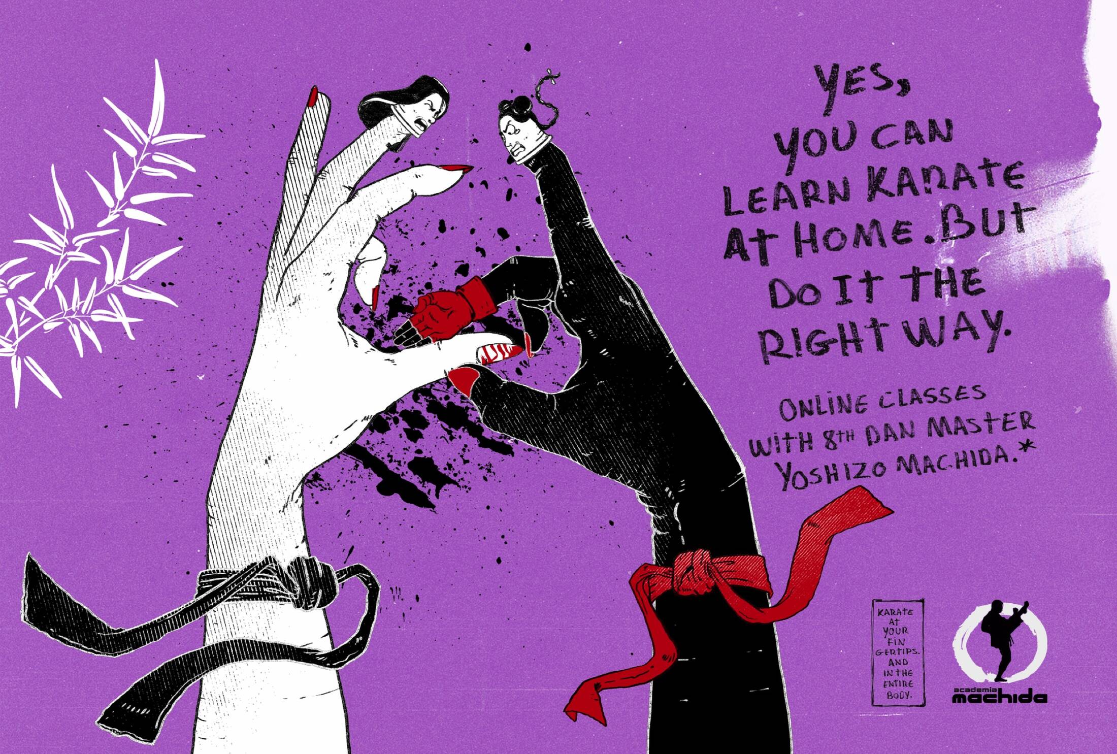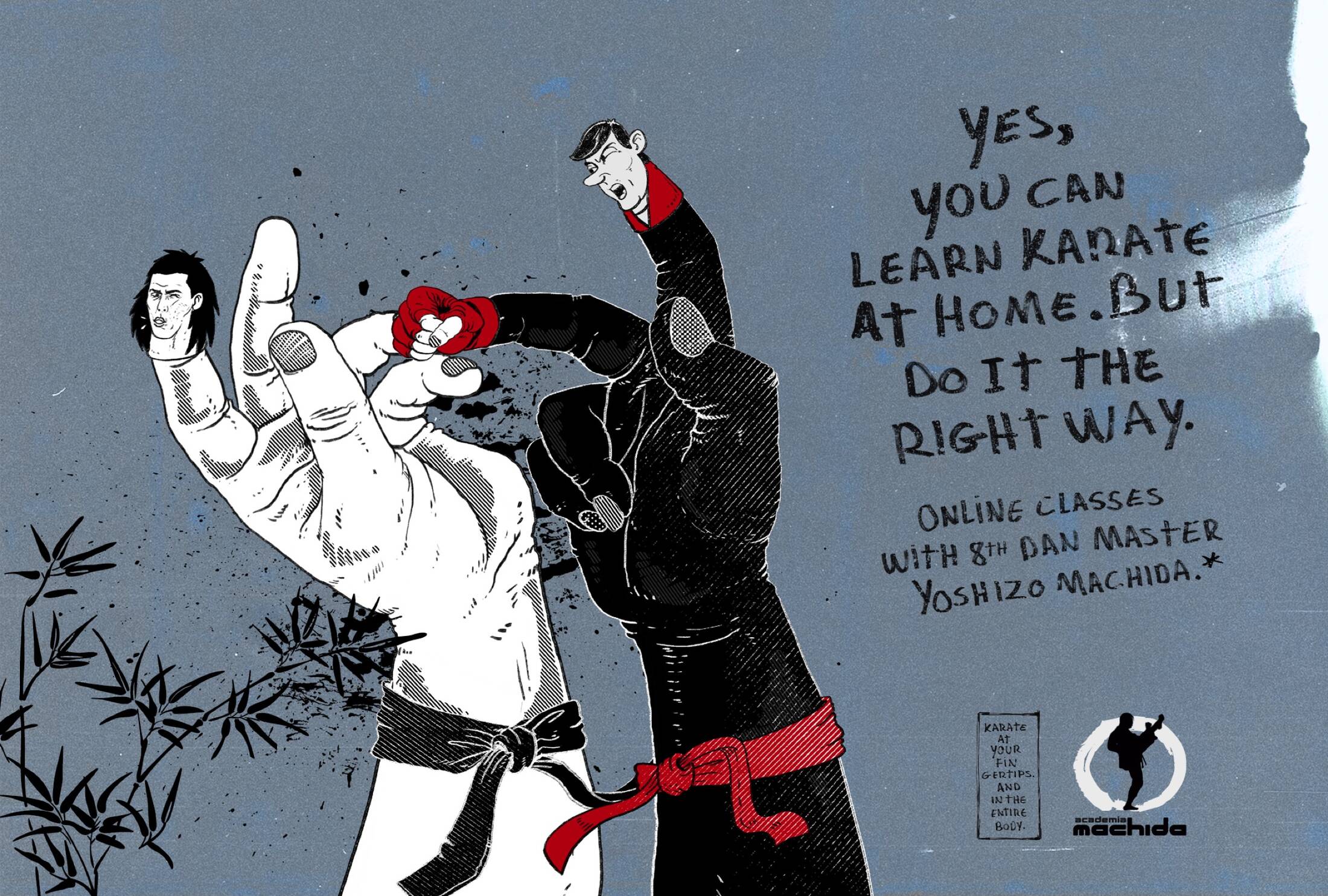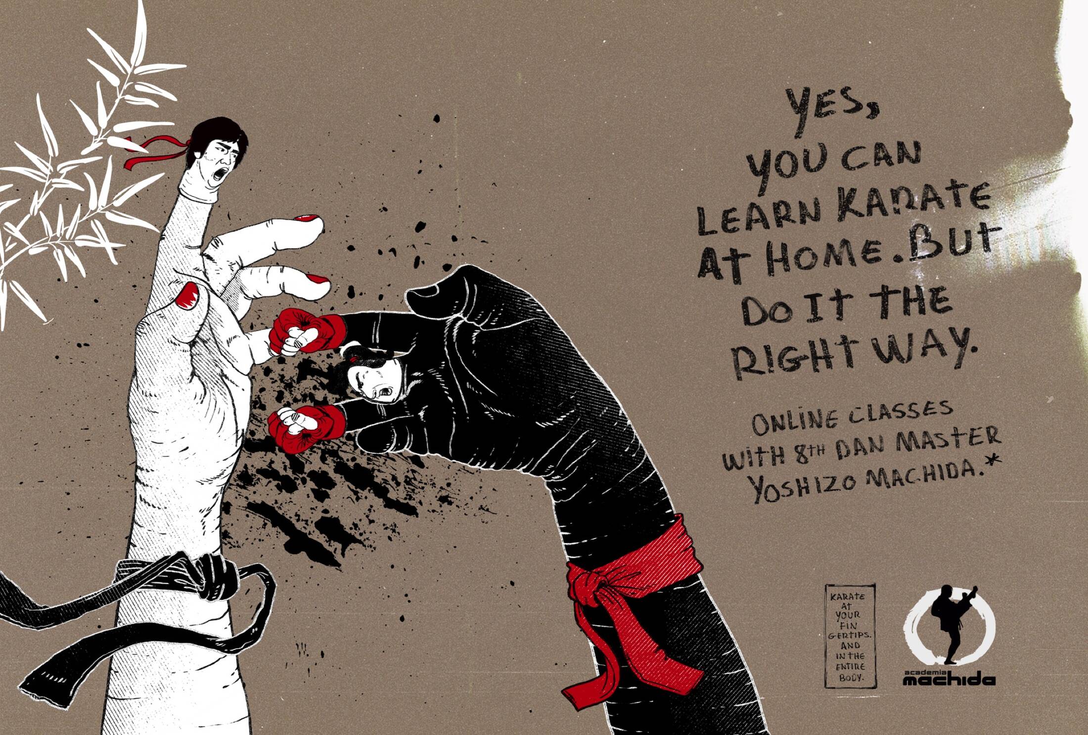 This professional campaign titled 'Karate at your fingertips. And the entire body.' was published in Brazil in March, 2021. It was created for the brand: Machida Karate Academy, by ad agency: BNDO. This Print medium campaign is related to the Health and Sports industries and contains 8 media assets. It was submitted over 4 years ago by Copywriter: Victor Amorim of Agência3.