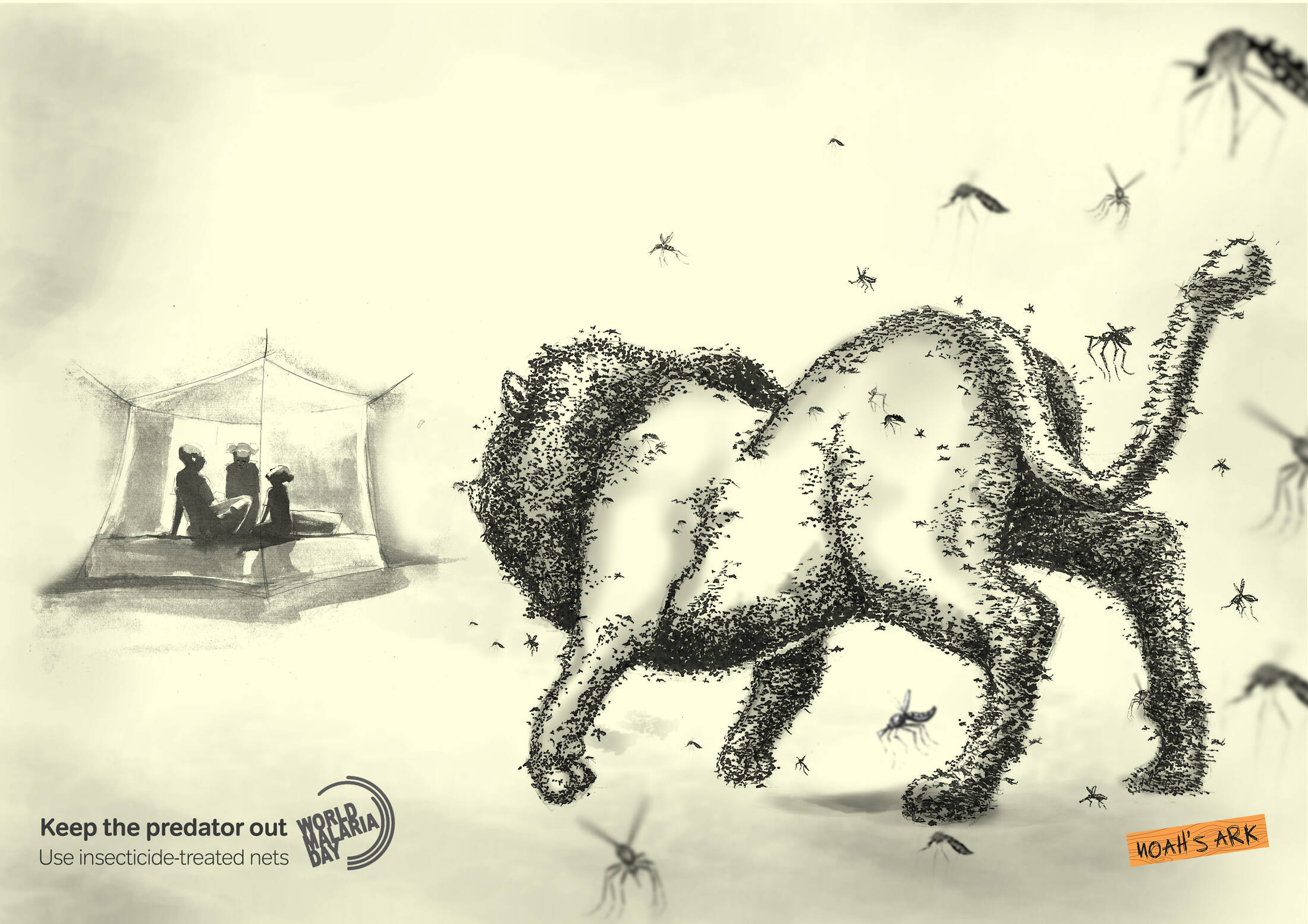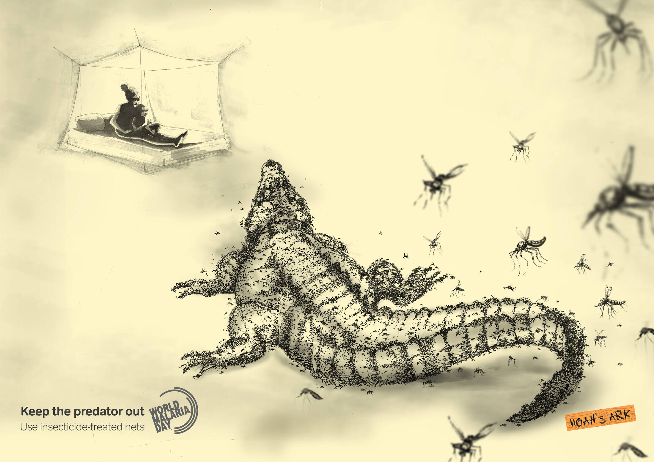 This professional campaign titled 'Keep The Predator Out - Crocodile, Lion' was published in Nigeria in April, 2019. It was created for the brand: World Malaria Day, by ad agency: Noah's Ark Creative. This Print medium campaign is related to the Public Interest industry and contains 2 media assets. It was submitted over 6 years ago.
