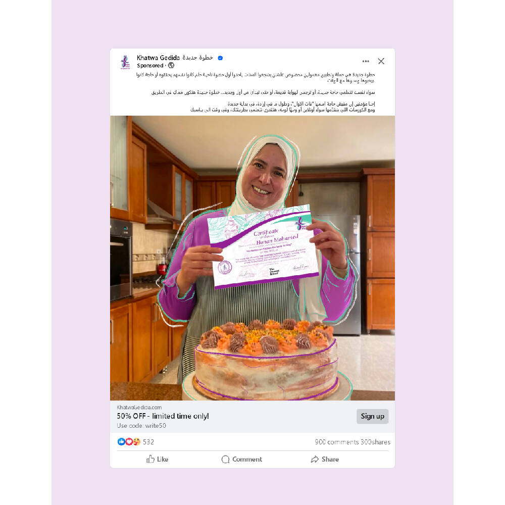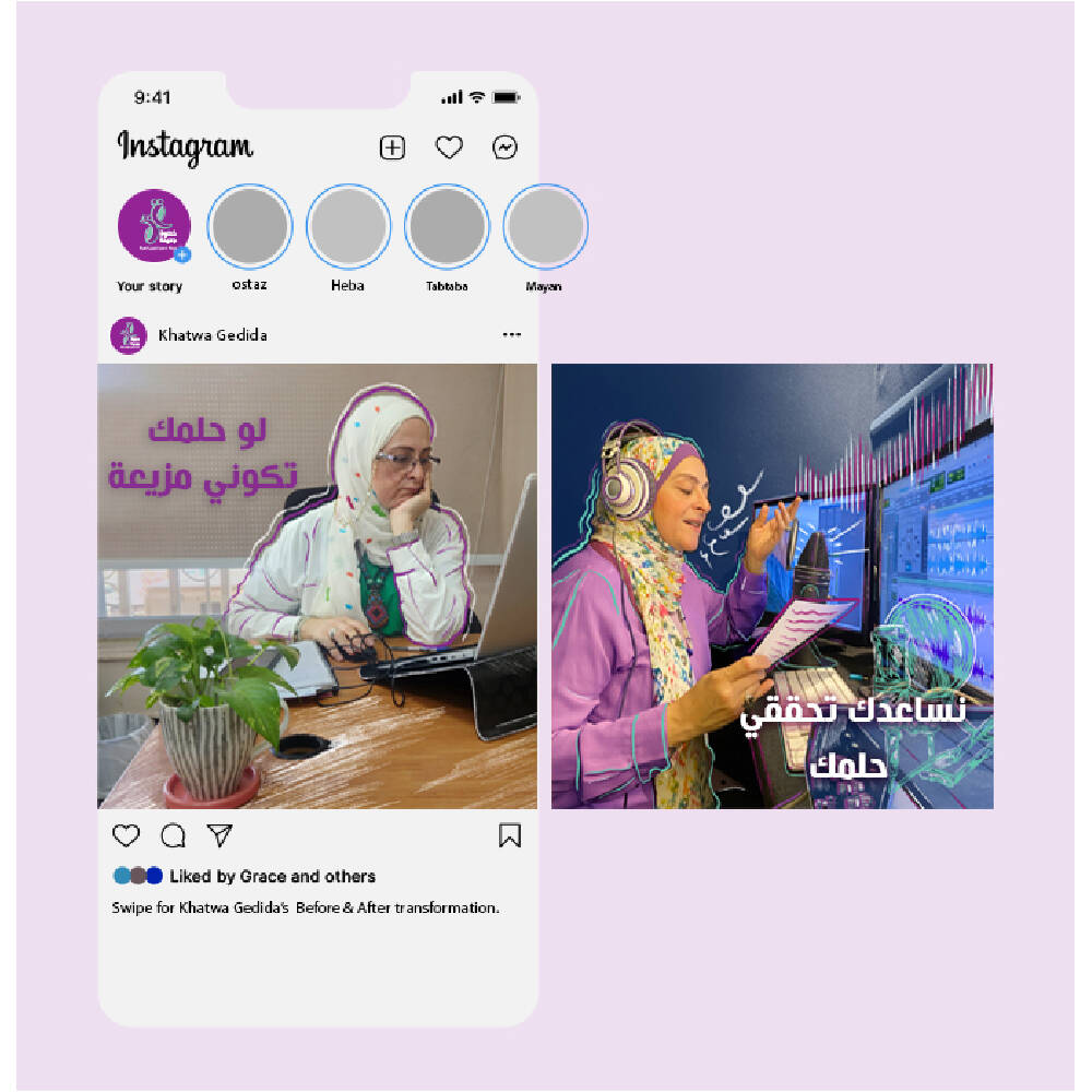 "Khatwa Gedeeda"is an awareness campaign that empowers women to take the first step toward rediscovering themselves and bringing an old dream back to life. Whether it’s learning something new or picking up a passion they once had, the campaign reminds them that it’s never too late to start again. It supports a mobile app that offers accessible courses and skill-building tools designed to fit their pace and interests.