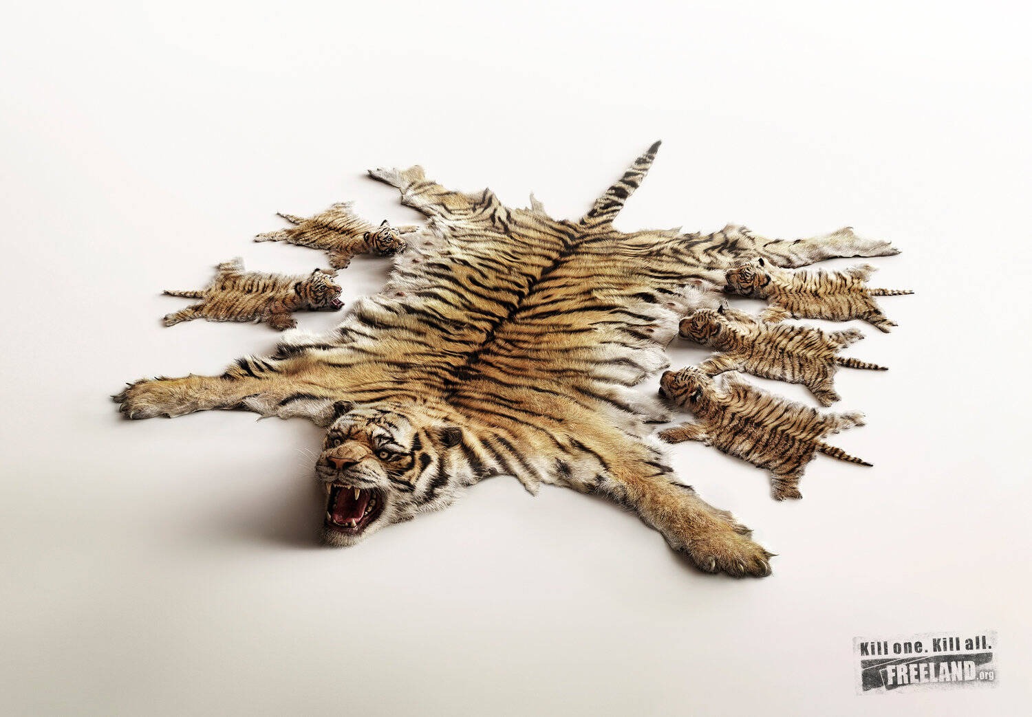 This professional campaign titled 'Kill one. Kill all: Tigers, Bears, Wolves, The Truth Behi...' was published in Thailand in June, 2018. It was created for the brand: Freeland Foundation, by ad agency: Ogilvy. This Print medium campaign is related to the Public Interest industry and contains 6 media assets. It was submitted almost 5 years ago.