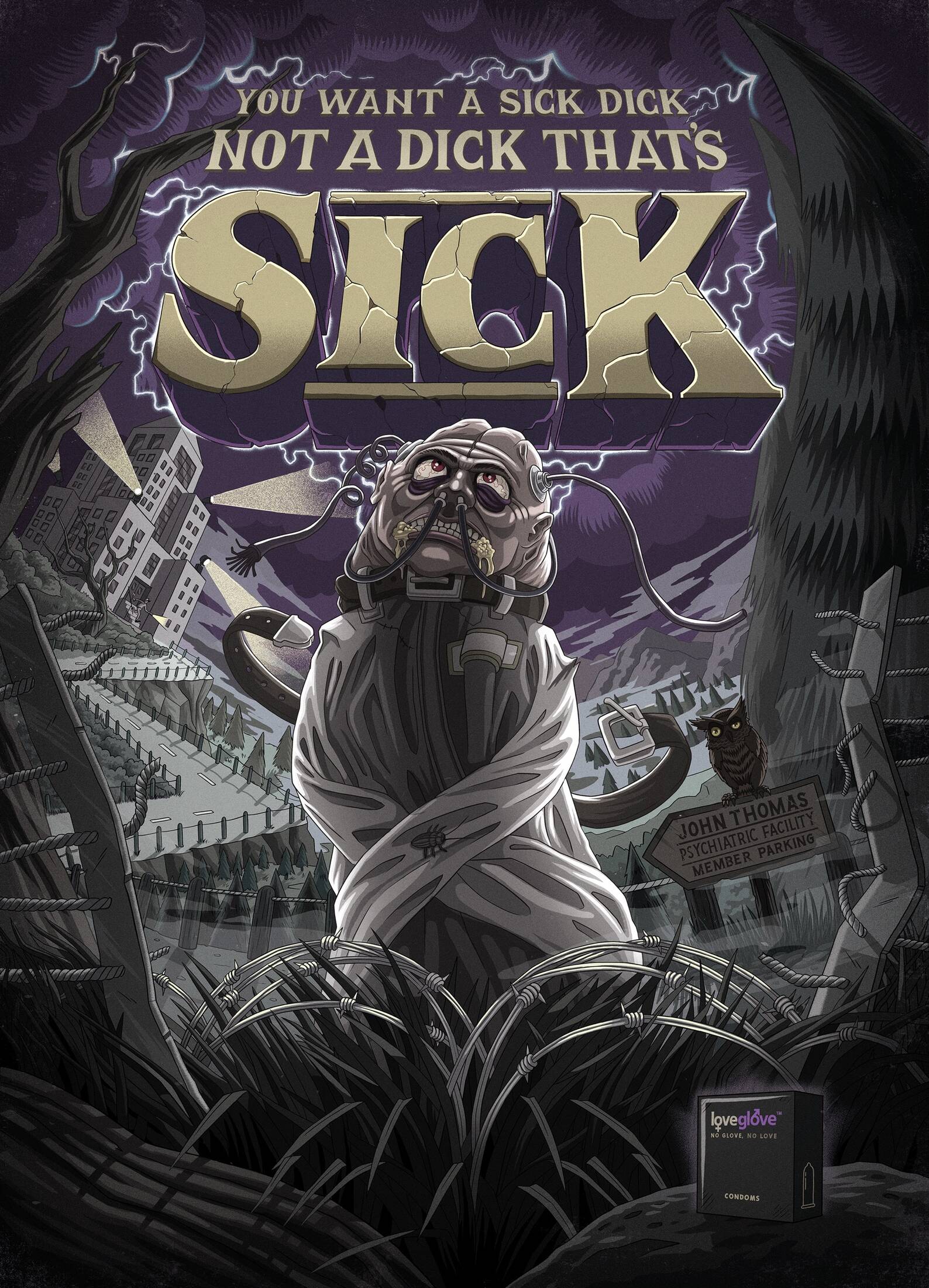 This professional campaign titled 'Killer Dick, Monster Dick, Sick Dick' was published in South Africa in May, 2017. It was created for the brand: Loveglove Condoms, by ad agency: Joe Public. This Print medium campaign is related to the Health industry and contains 3 media assets. It was submitted over 8 years ago.