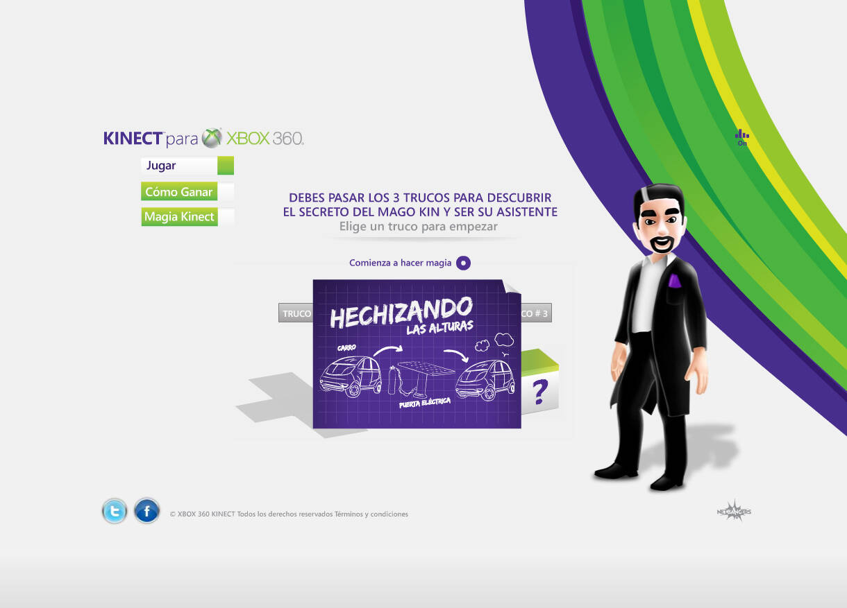 The brand wanted to show the product's advantages in a way that non-gamer people could understand. For that reason we created the character, "Kin The Magician", a magician that made stupid tricks and thought people believed them. "Kin" is looking for an assistant and creates several tests in http://www.tuereselcontrol.com to challenge people to work with him like: lift a car with mind powers, levitate, and make coffee appear magically in a cup.