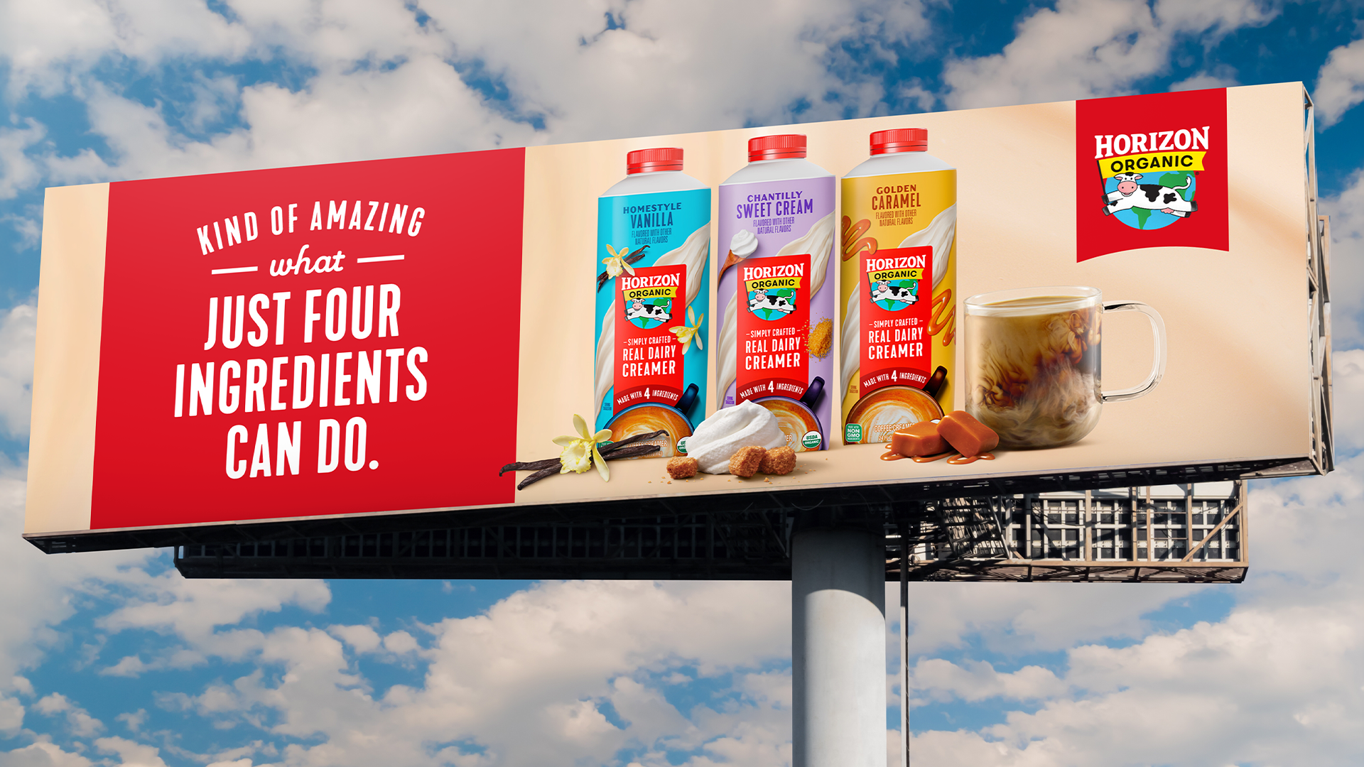 The campaign introduces Horizon Organic Real Dairy Creamers in three flavors: Homestyle Vanilla, Chantilly Sweet Cream, and Golden Caramel, and will run through Q3 2026 across streaming TV, paid social, display, custom content, and OOH.