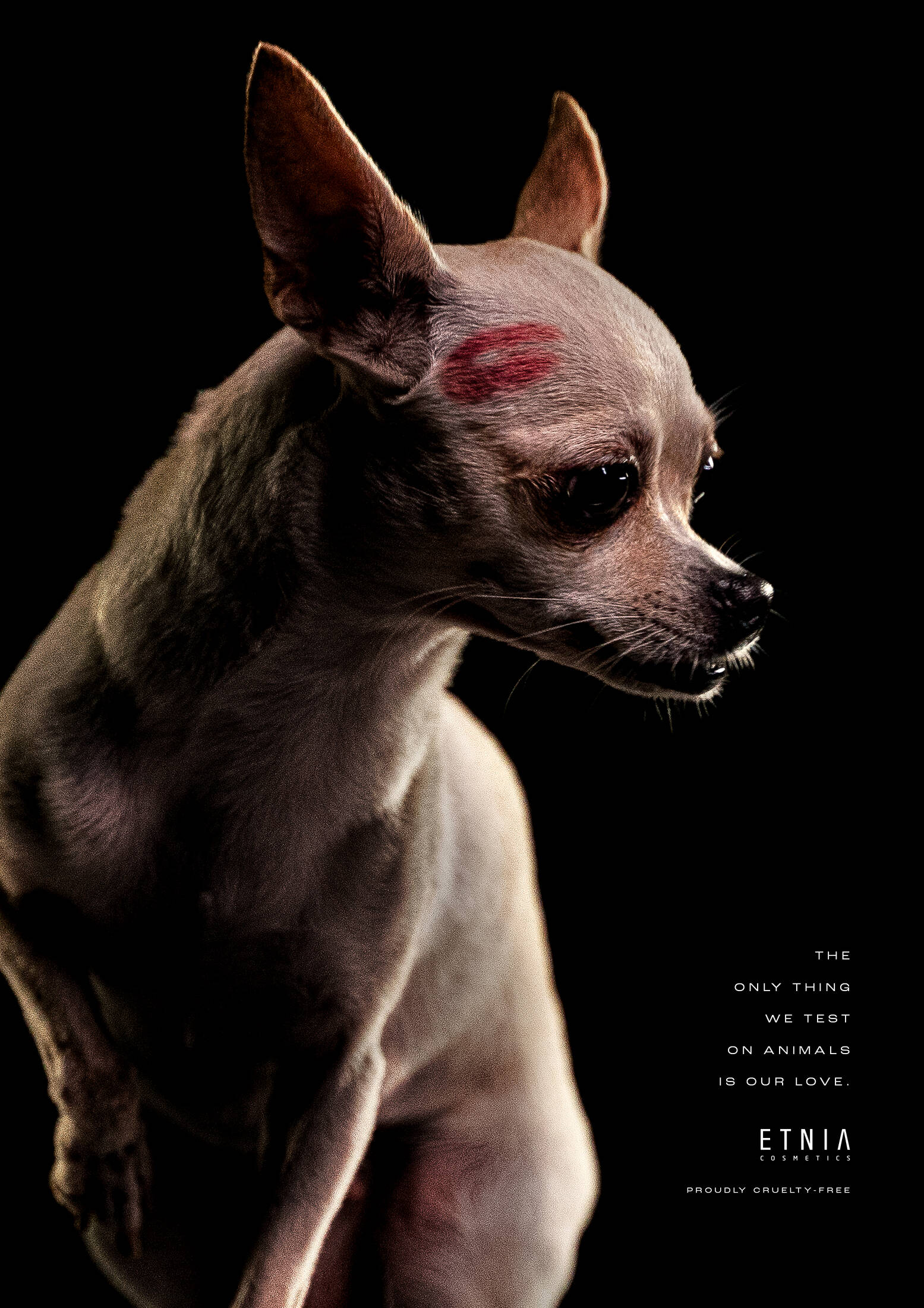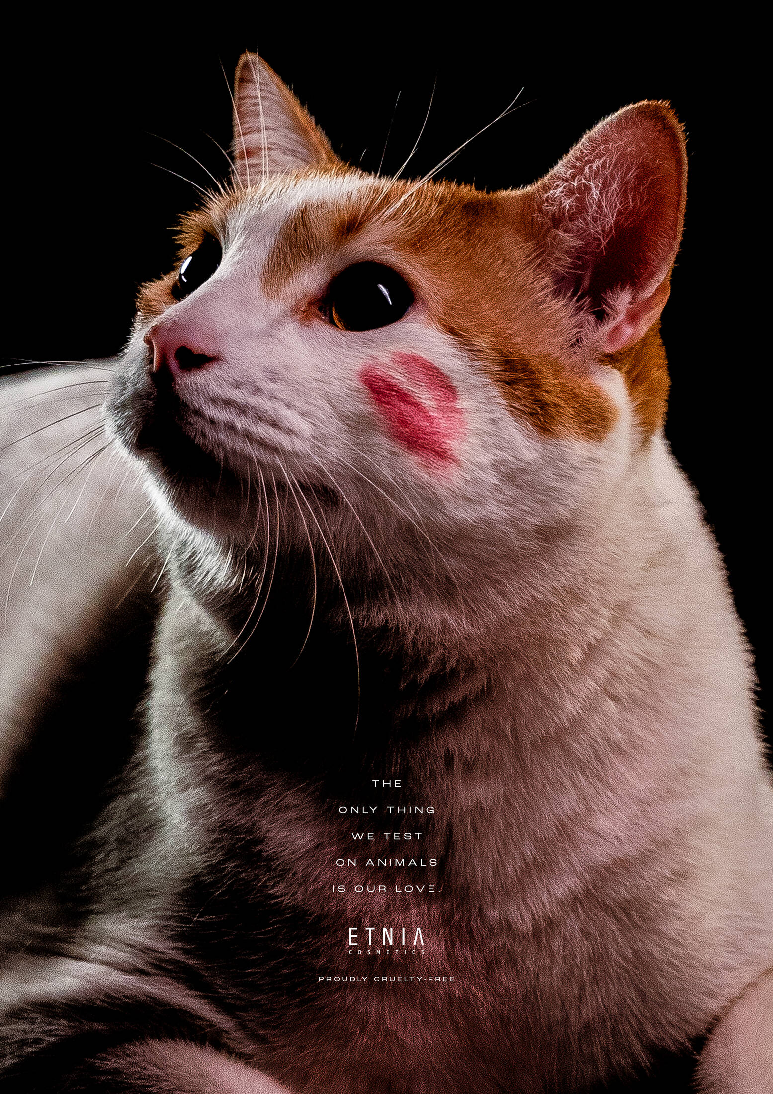 More than 500,000 animals are mistreated every year as a result of tests carried out in laboratories for cosmetics production, and to communicate Etnia Cosmetics is cruelty-free, we did not do a typical campaign with models and makeup, we did one with their real beneficiaries: animals.