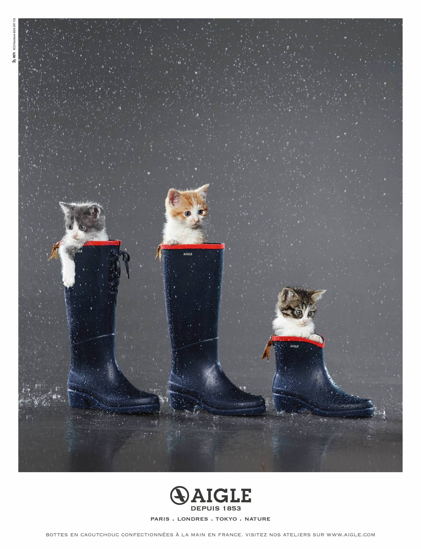 This professional campaign titled 'Kittens' was published in France in March, 2014. It was created for the brand: Aigle, by ad agency: BETC. This OOH Outdoor medium campaign is related to the Fashion industry and contains 2 media assets. It was submitted almost 12 years ago.