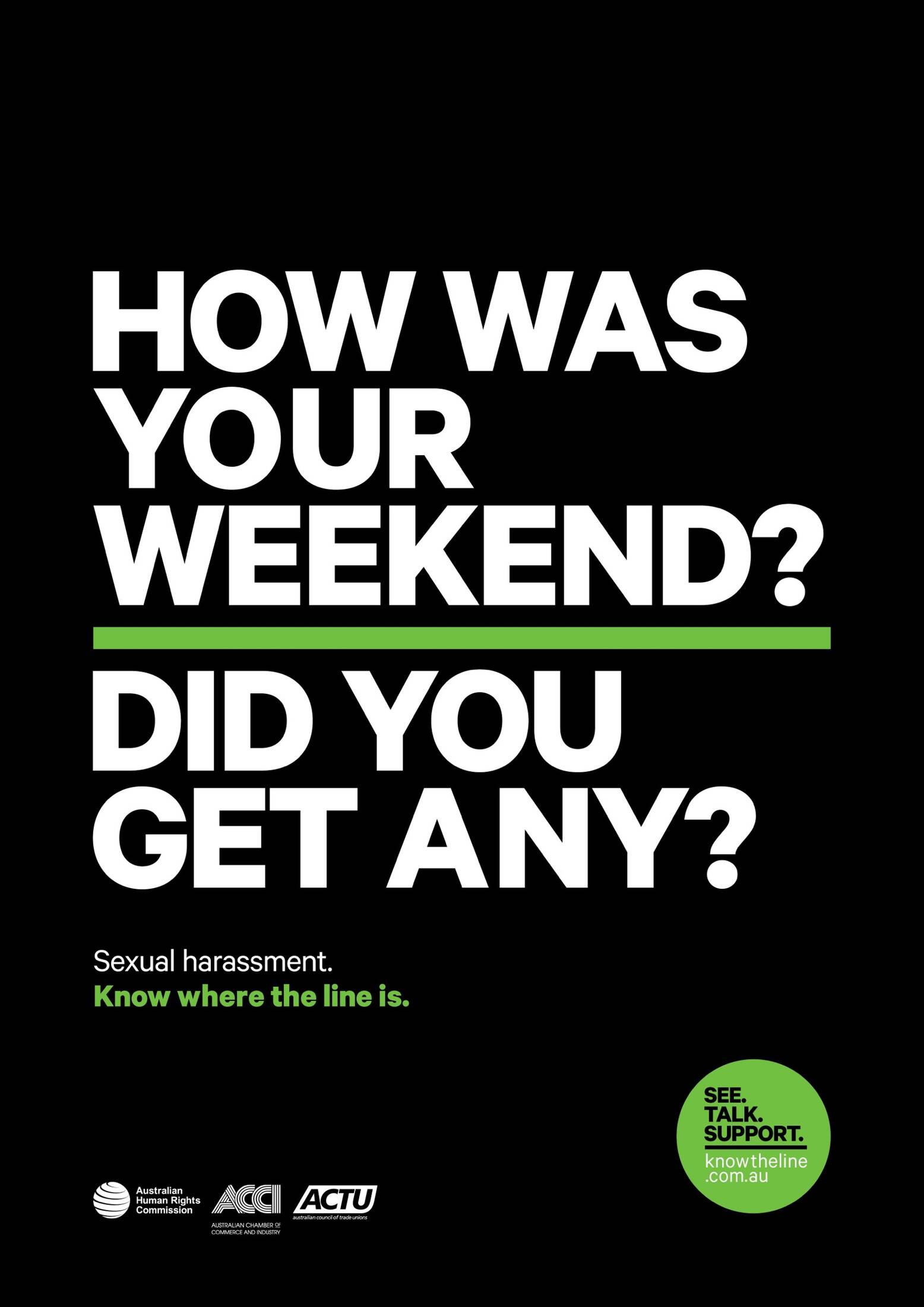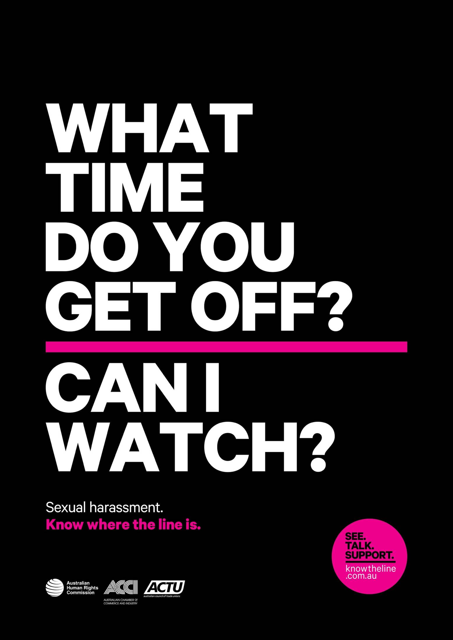 The new campaign ‘Know Where the Line is’ is in response to the Australian Human Rights Commission’s 2012 national sexual harassment prevalence survey, Working Without Fear. The research showed that workplace sexual harassment is pervasive and persistent in Australia with 1 in 4 women and 1 in 6 men having experienced workplace sexual harassment in the last 5 years. In addition, male harassment of other men is also on the rise. Importantly, the research showed that there is limited understanding amongst employers and employees about what constitutes sexual harassment. One of the unusual things about sexual harassment is that - in the offices, factory floors, warehouses and work sites around our country - people know something ‘not right’ is happening to them or someone else, but they don’t know what to call it or what to do.