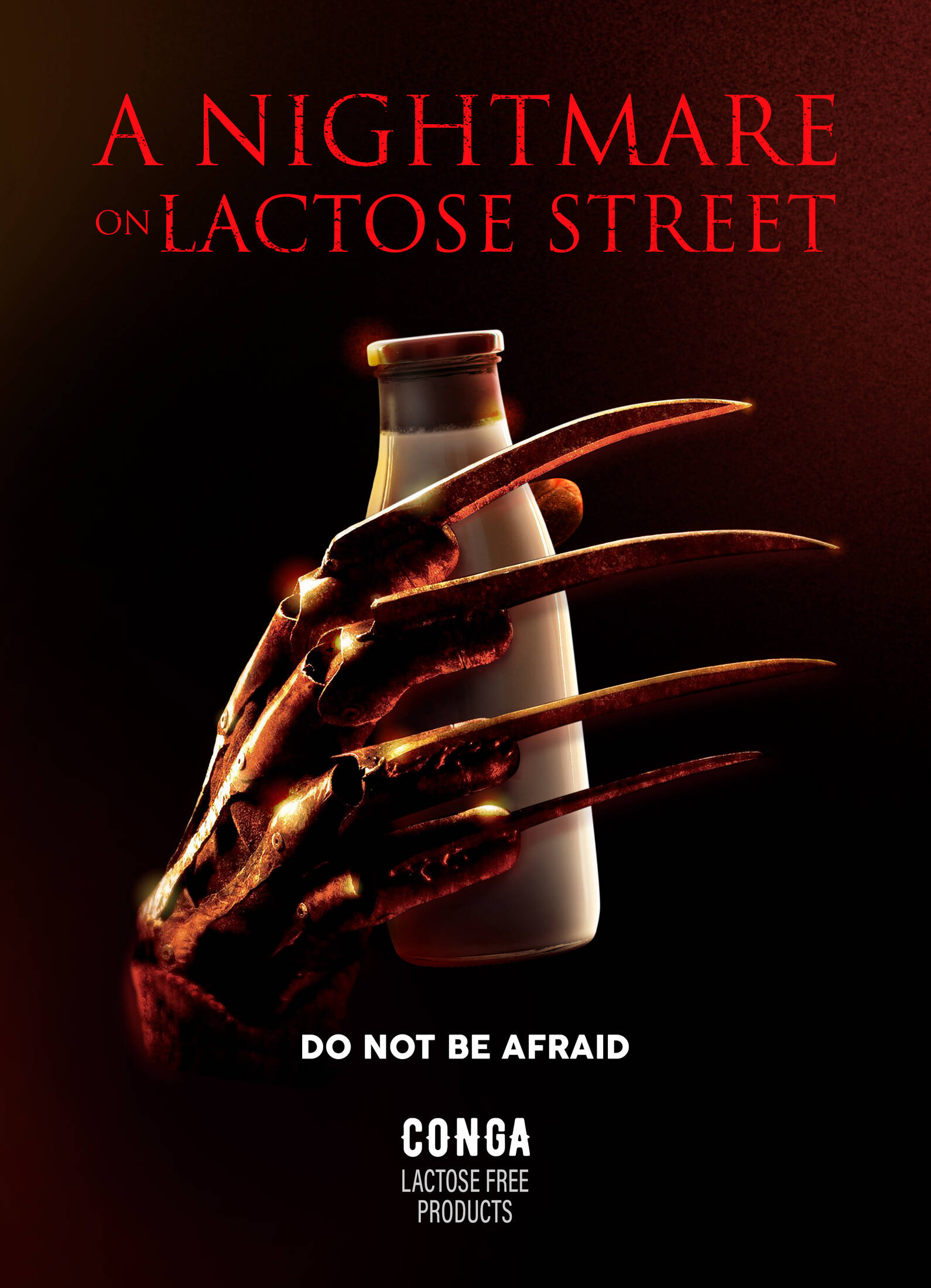 Lactose causes fear in many people because they suffer from intolerance to it. On Halloween day we wanted to portray this fear in the context of iconic horror films, drawing attention to our products that are made without the frightening lactose