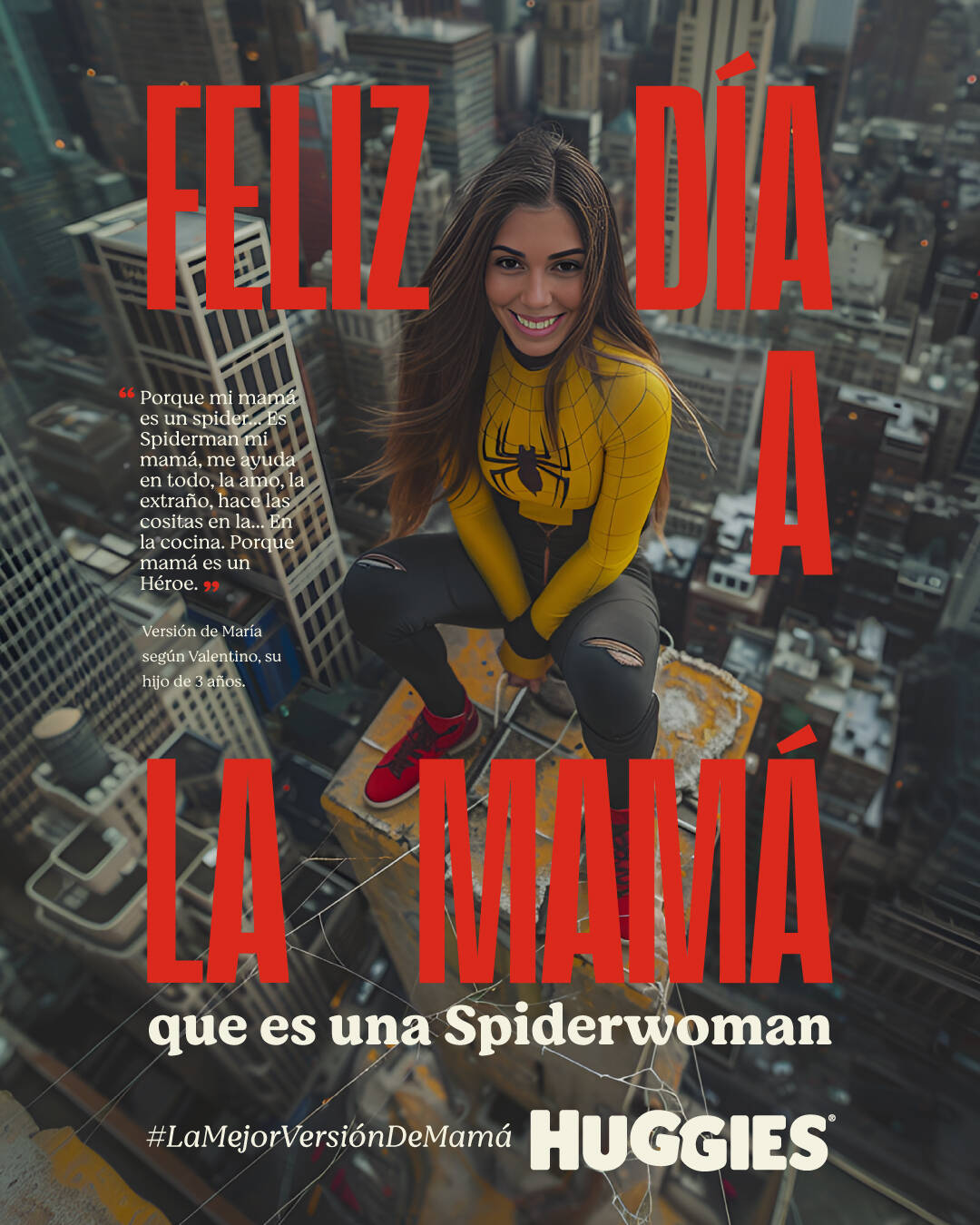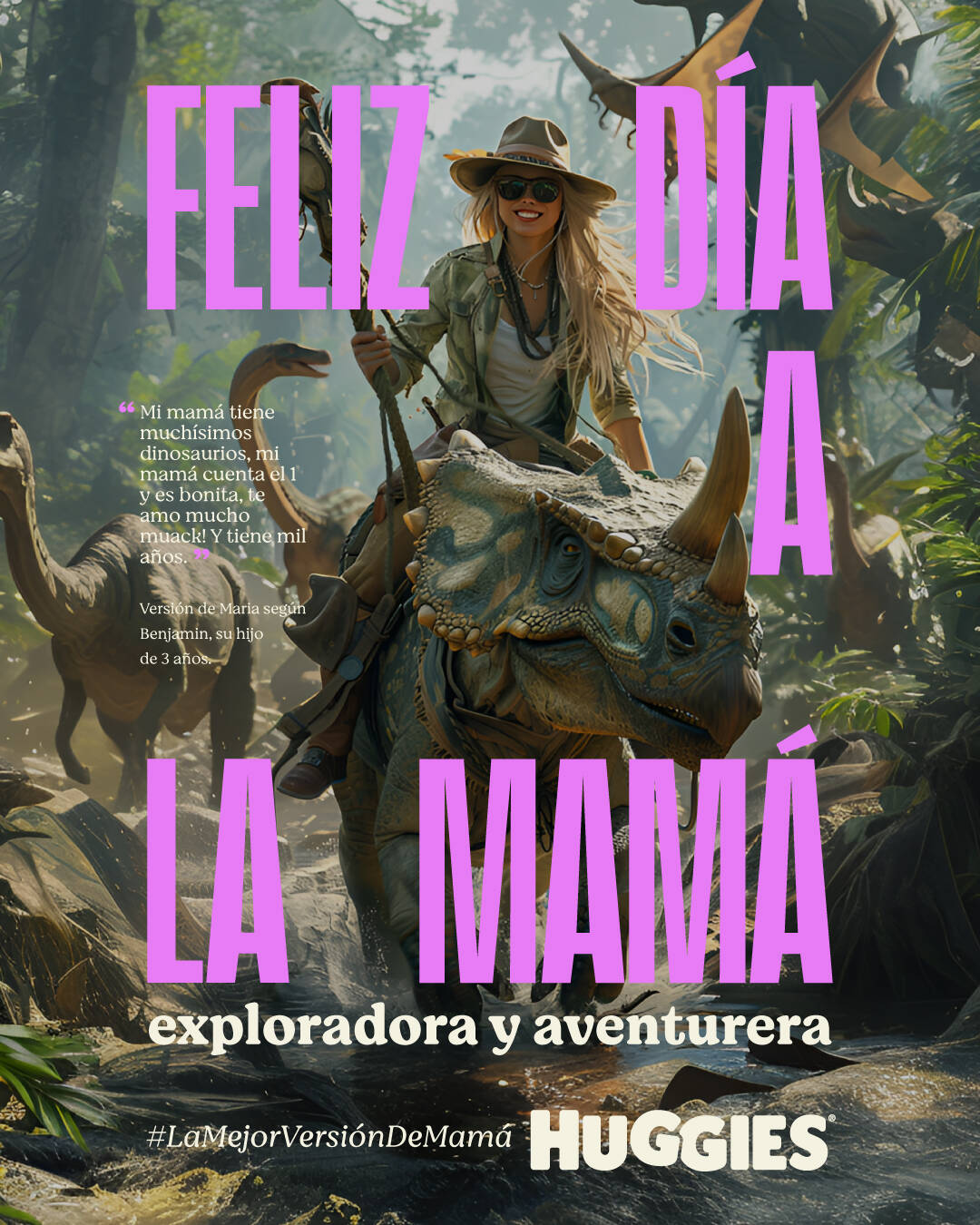 Only the innocence, love, and imagination of a child can see the best version of their mom. For this reason, at HUGGIES, we decided to travel throughout Latin America collecting these descriptions that only they can provide. Through AI, we created a unique postcard that reflects the powers, beauty, and magic that mothers possess, seen by very few. This initiative aims to celebrate the role of motherhood and remind the world that every mother is at her best.