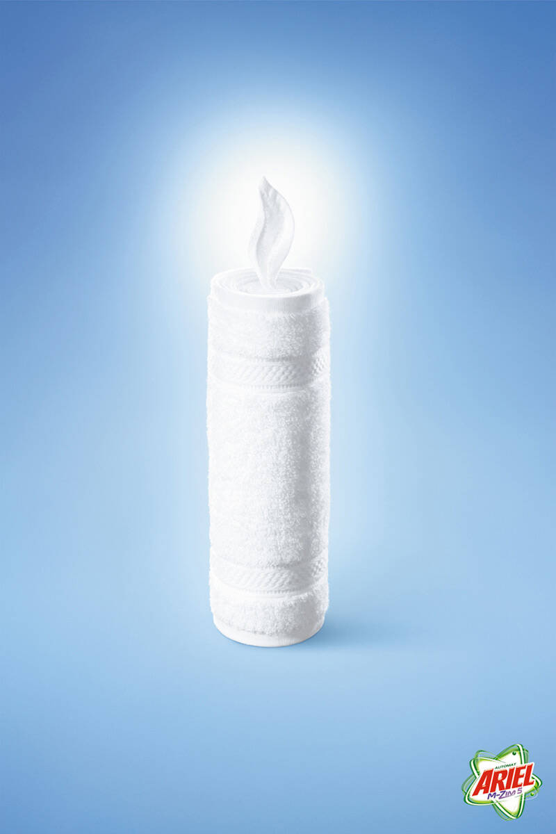 This professional campaign titled 'Lamp, Bulb, Candle' was published in Russia in October, 2007. It was created for the brand: Ariel, by ad agency: Saatchi & Saatchi. This Print medium campaign is related to the House, Garden industry and contains 3 media assets. It was submitted about 18 years ago.