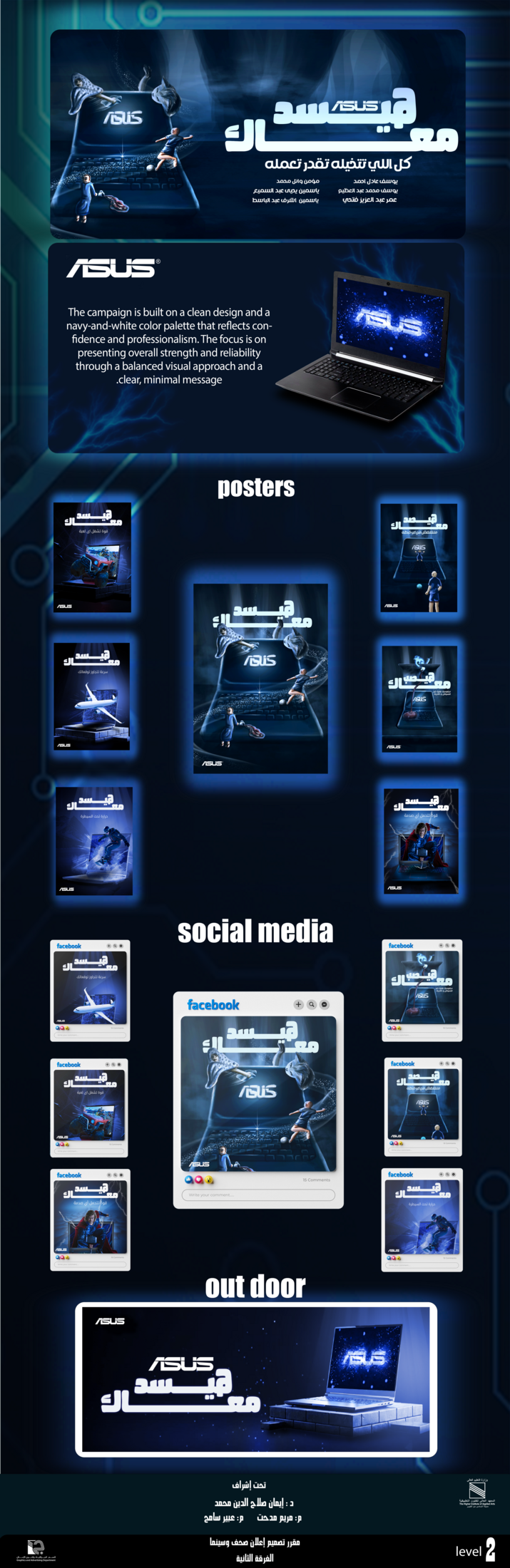 This student campaign titled 'laptop campaign ' was published in Egypt in January, 2026. It was created for the brand: Asus, by ad school: The Higher Institute Of Applied Arts. This Content medium campaign is related to the Electronics, Technology industry and contains 9 media assets. It was submitted 5 days ago by graphic design student: yasmin ashraf of 20240202@appliedarts.edu.eg.
