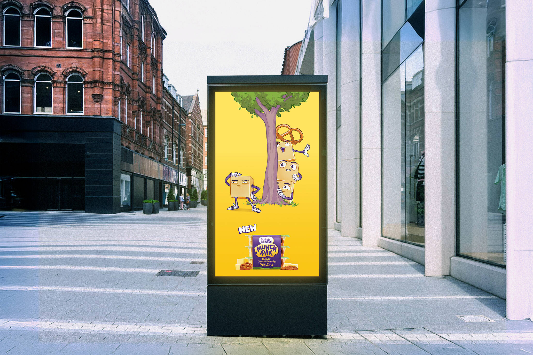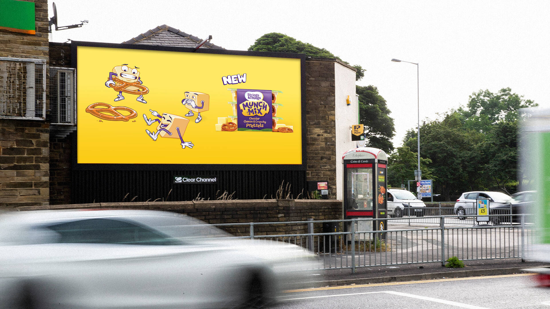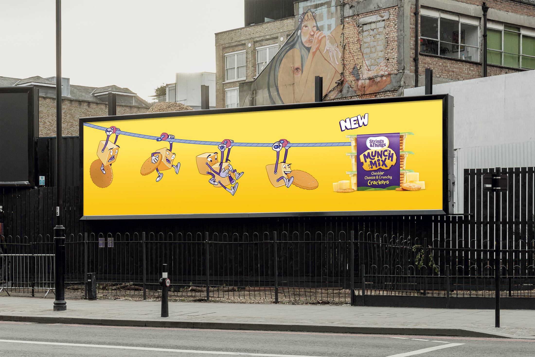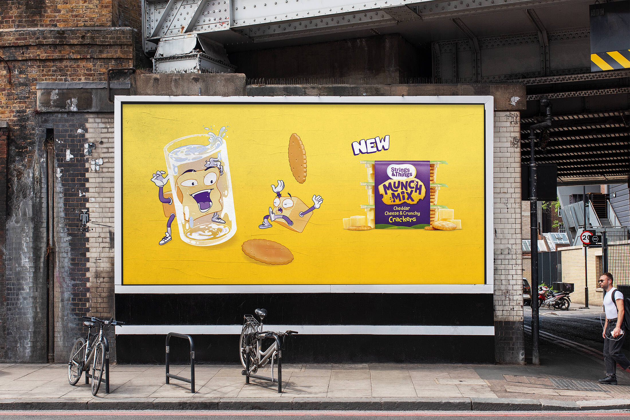 A new OOH campaign by creative agency BMB celebrates the launch of Munch Mix, a unique snack combination from Kerry Dairy Consumer Foods’ Strings & Things brand. The campaign introduces a joyful set of characters, bringing out the playfulness of the product.