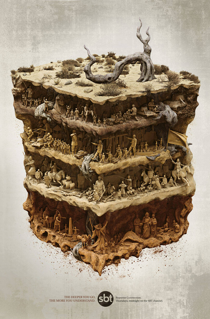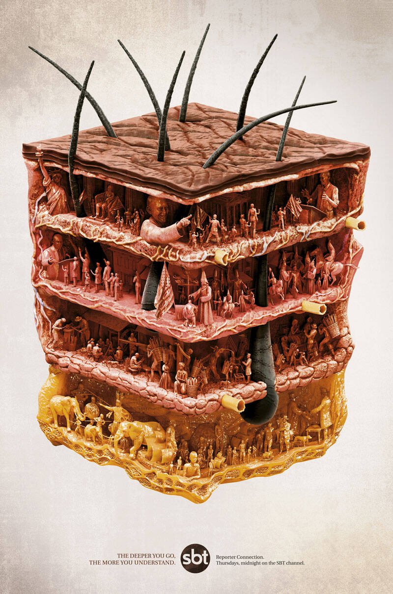 This professional campaign titled 'Layers of Skin, Layers of Earth' was published in Brazil in May, 2013. It was created for the brand: SBT, by ad agency: Publicis. This Print medium campaign is related to the Media industry and contains 2 media assets. It was submitted over 12 years ago.