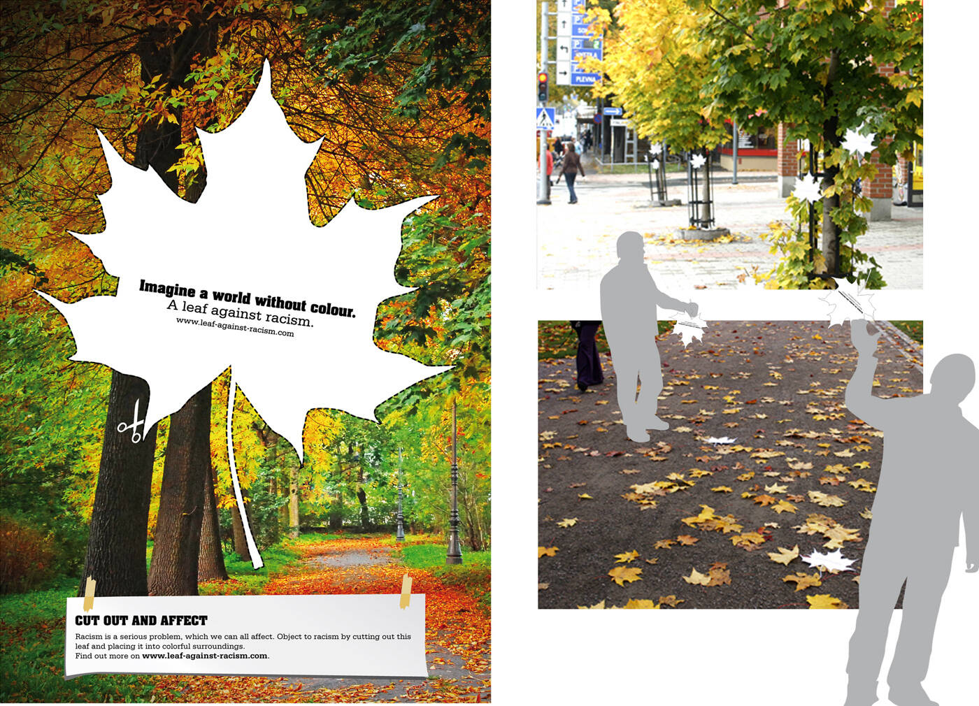 This professional campaign titled 'Leaf against racism' was published in Finland in October, 2008. It was created by ad agency: Trust Creative Society. This Ambient medium campaign is related to the Public Interest industry and contains 1 media asset. It was submitted about 17 years ago.
