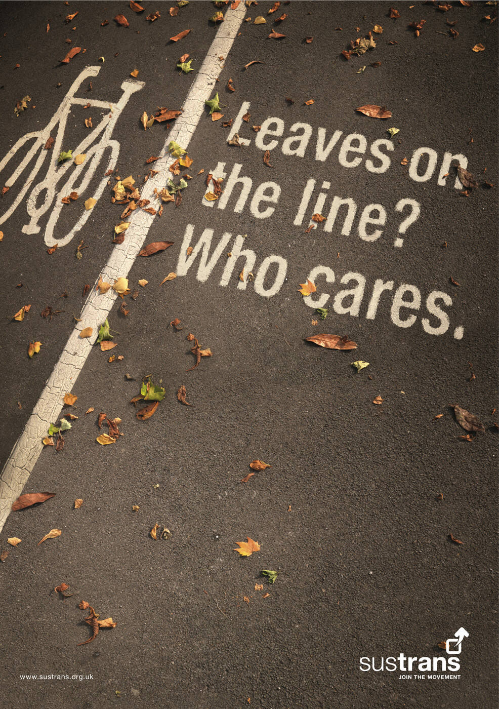 This professional campaign titled 'Leaves on the line? Who cares., A guaranteed seat every d...' was published in United Kingdom in March, 2009. It was created for the brand: Sustrans, by ad agency: Bray Leino. This Print medium campaign is related to the Transport industry and contains 3 media assets. It was submitted about 16 years ago.