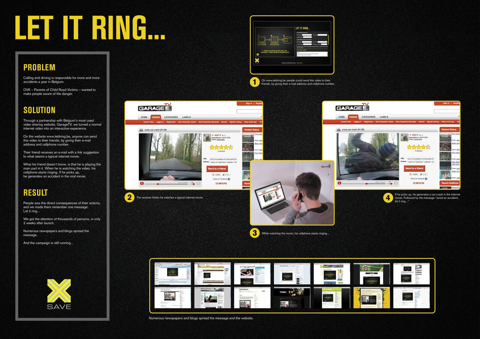 This professional campaign titled 'Let it ring' was published in Belgium in June, 2009. It was created for the brand: OVK, by ad agency: Happiness. This Digital medium campaign is related to the Public Interest industry and contains 1 media asset. It was submitted over 16 years ago.