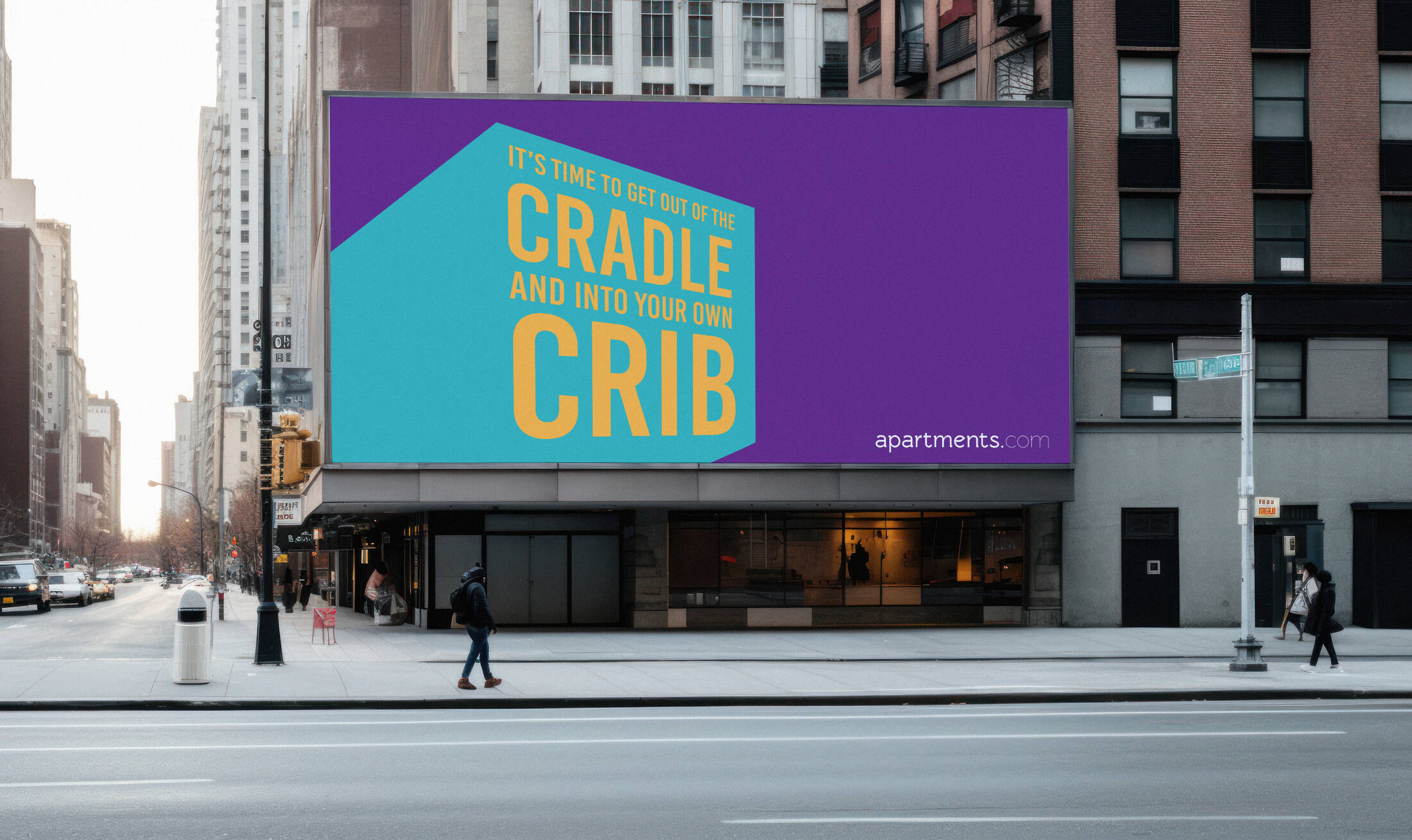This student campaign titled 'Find a new place.' was published on January 01, 2018. It was created for the brand: Apartments.com, by ad school: Southern Methodist University. This OOH Outdoor and Print media campaign is related to the Real Estate industry and contains 5 media assets. It was submitted almost 2 years ago by Senior Lecturer & Creative Program Director: Mark Allen of Southern Methodist University.