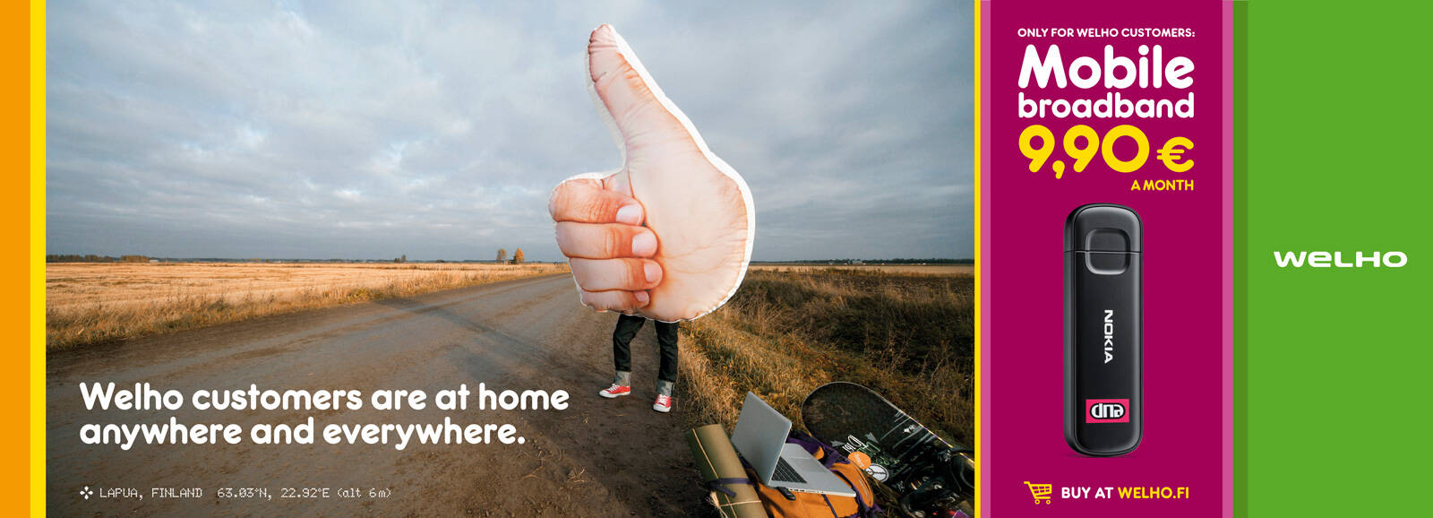 This professional campaign titled 'Levitunturi, Lapland, Lapua, Finland, Eira, Helsinki' was published in Finland in November, 2010. It was created for the brand: Welho, by ad agency: 358. This OOH Outdoor medium campaign is related to the Electronics, Technology industry and contains 3 media assets. It was submitted about 15 years ago.