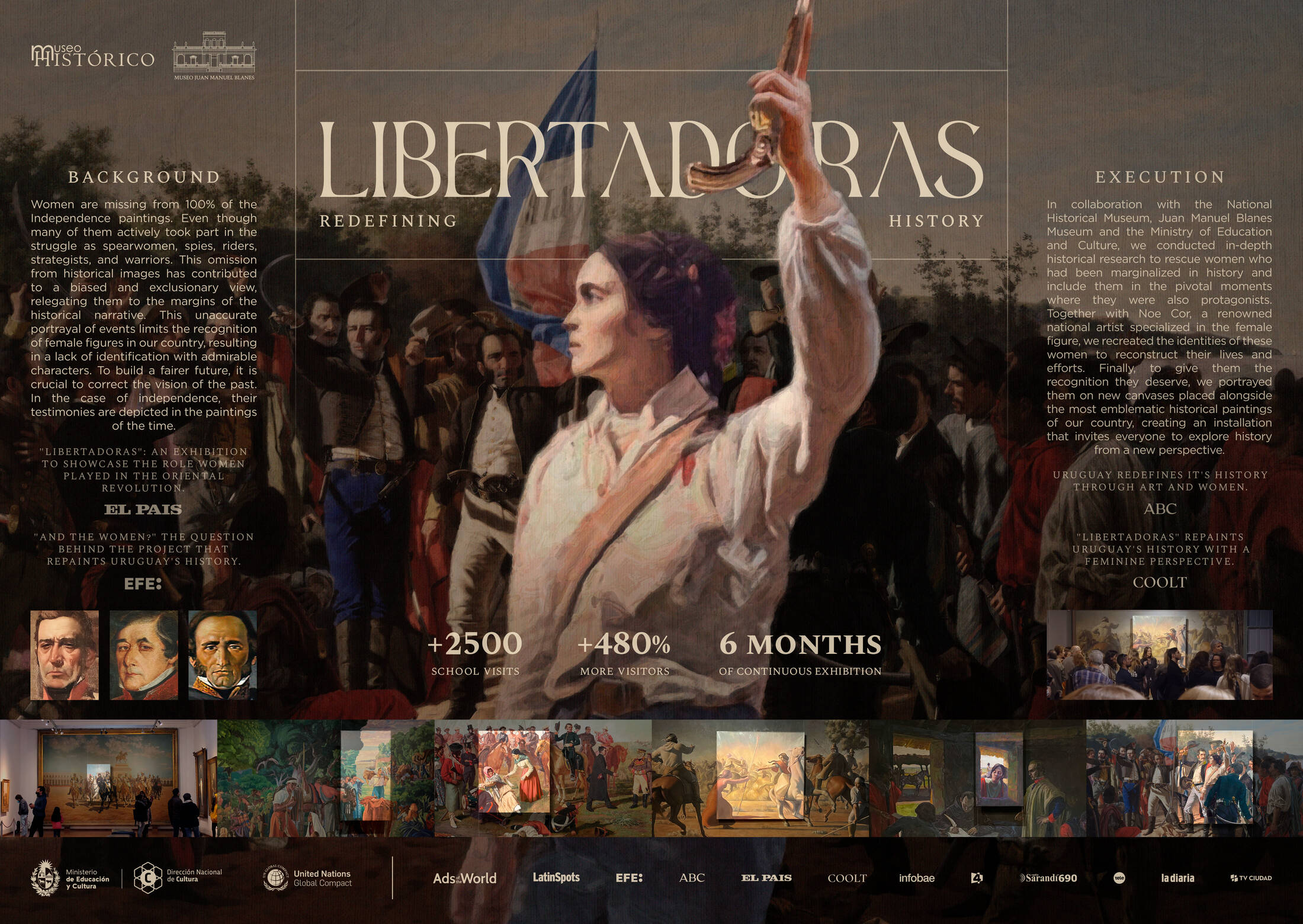 This professional campaign titled '“Libertadoras”' was published in Uruguay in December, 2023. It was created for the brand: Museo Histórico Nacional y Museo Blanes, by ad agency: WILD Fi. This Integrated medium campaign is related to the Public Interest industry and contains 2 media assets. It was submitted over 1 year ago.
