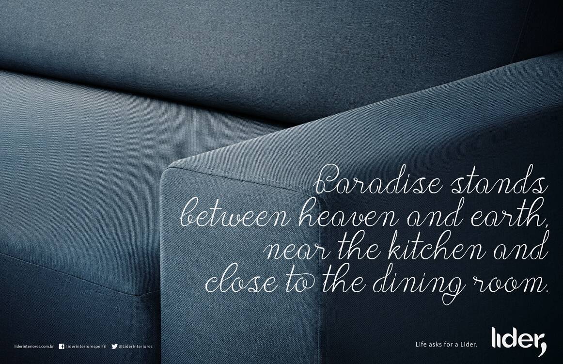 This professional campaign titled 'Life asks for a Lider, Remote, Life asks for a Lider, Piz...' was published in Brazil in April, 2013. It was created for the brand: Lider Interiores, by ad agency: Lápisraro. This Print medium campaign is related to the House, Garden industry and contains 4 media assets. It was submitted over 12 years ago.