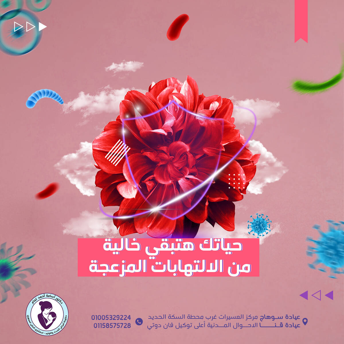 we represent the female genital organ by the flower and the germs flying around it, and a shield in between which represents the doctor's role in treating those infections