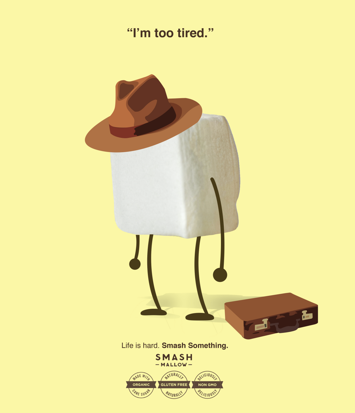 This student campaign titled 'Life Is Hard.' was published in United States in November, 2021. It was created for the brand: SMASHMALLOW, by ad school: College for Creative Studies. This Print medium campaign is related to the Confectionery, Snacks and Food industries and contains 3 media assets. It was submitted almost 2 years ago by Kiki Farrar.