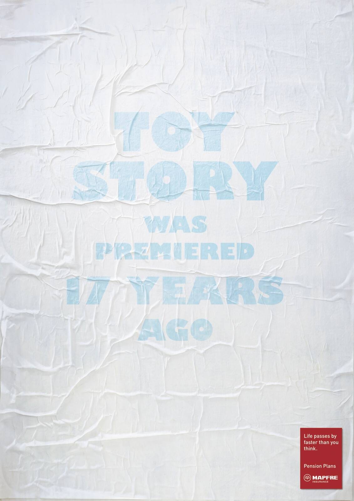 This professional campaign titled 'Life Passes By, Smart car, Life Passes By, Toy Story, Lif...' was published in Spain in November, 2012. It was created for the brand: Mapfre, by ad agency: M&C Saatchi. This OOH Outdoor medium campaign is related to the Finance industry and contains 3 media assets. It was submitted about 13 years ago.