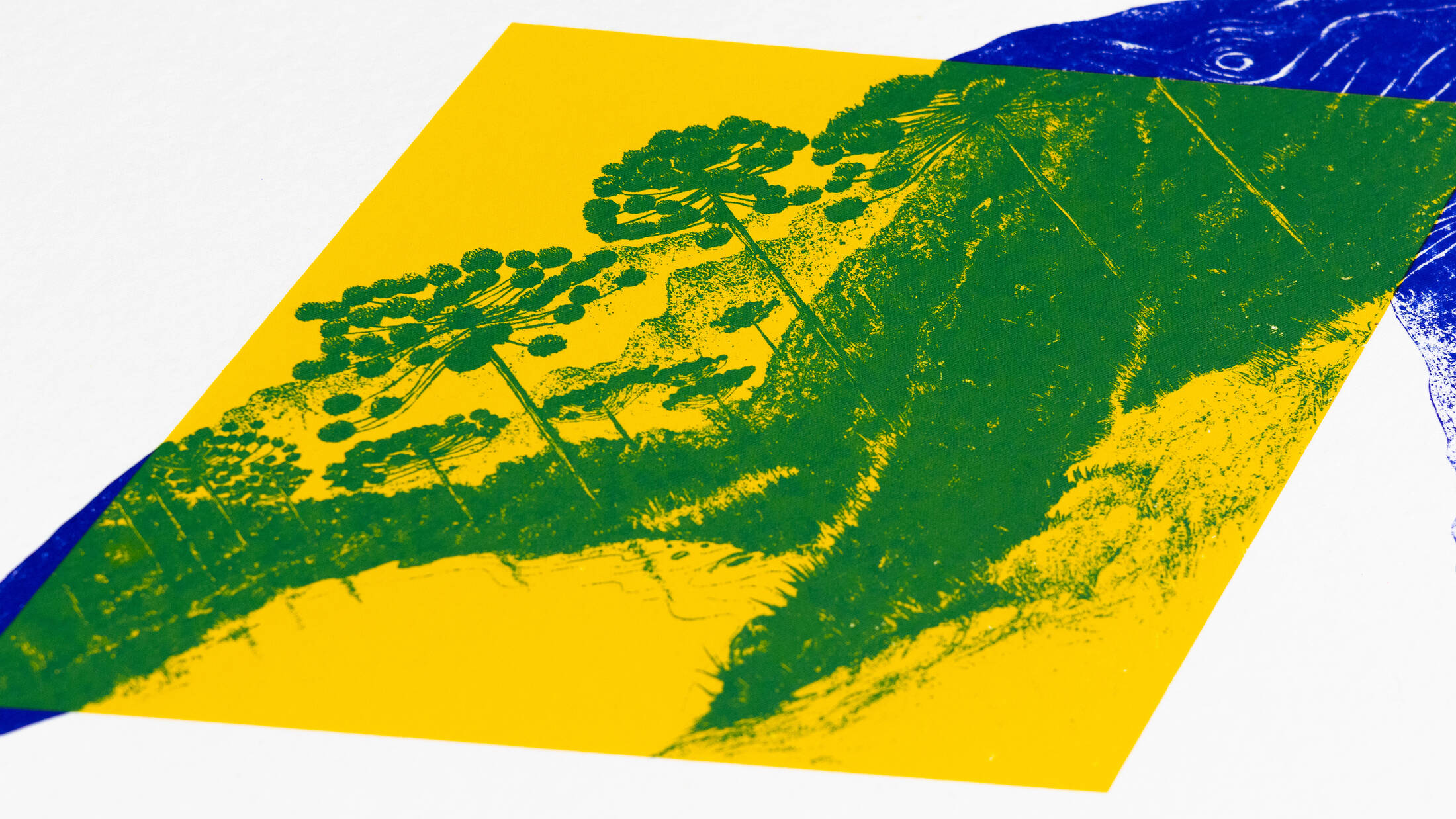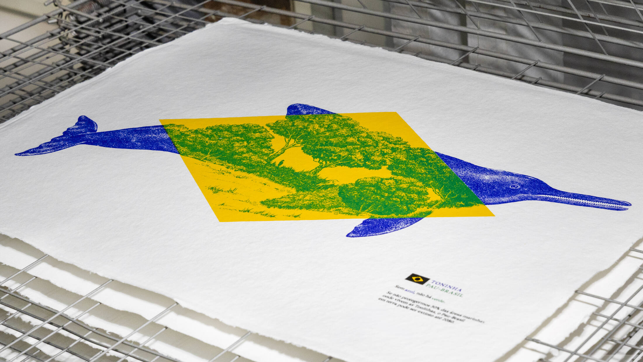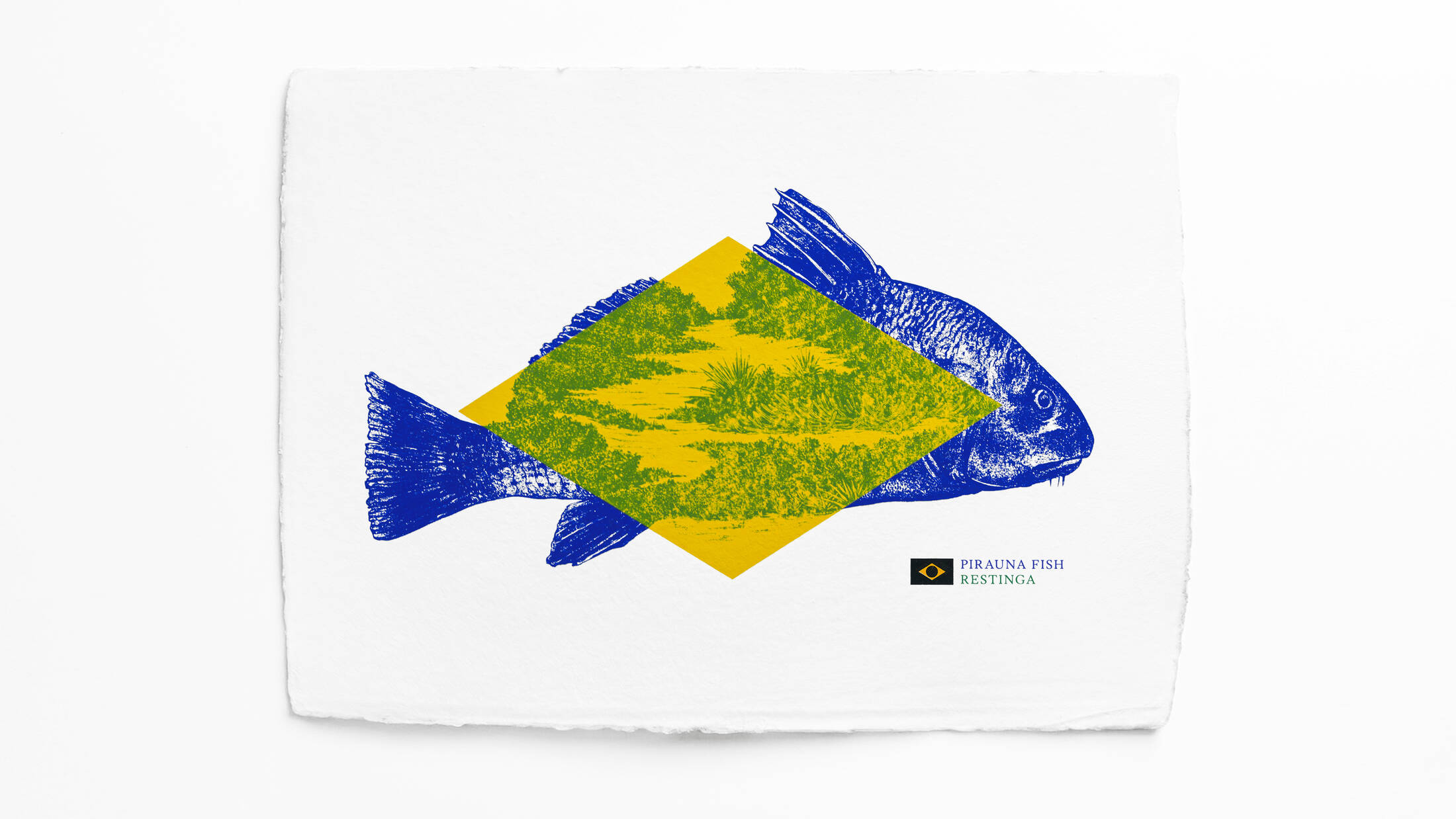 From the Amazon Rainforest to the Humpback Whale, each print draws on the tradition of Brazilian naturalist iconography by pairing marine and land flora and fauna. The yellow diamond of the Brazilian flag remains the focal point of each print, highlighting the fusion of the colors removed in the first phase.