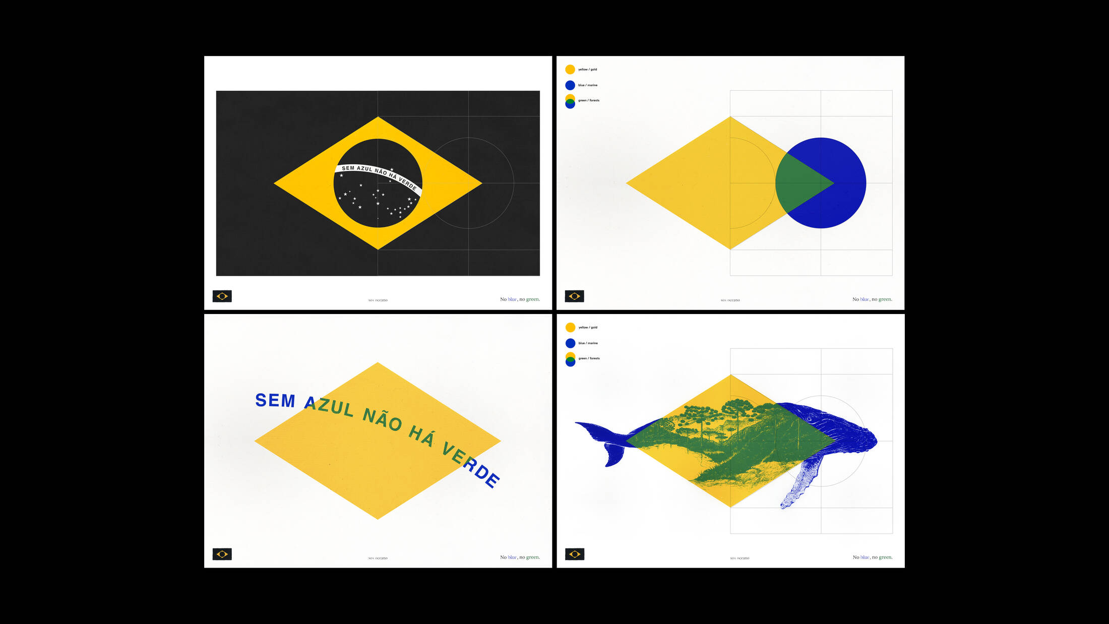 The first phase of the campaign, launched at Rio Ocean Week in October 2025, removed the blue and green from the Brazilian flag to demonstrate that one ecosystem cannot exist without the other. One needs blue to create green, and that without the blue of the oceans, there is no green life on land.