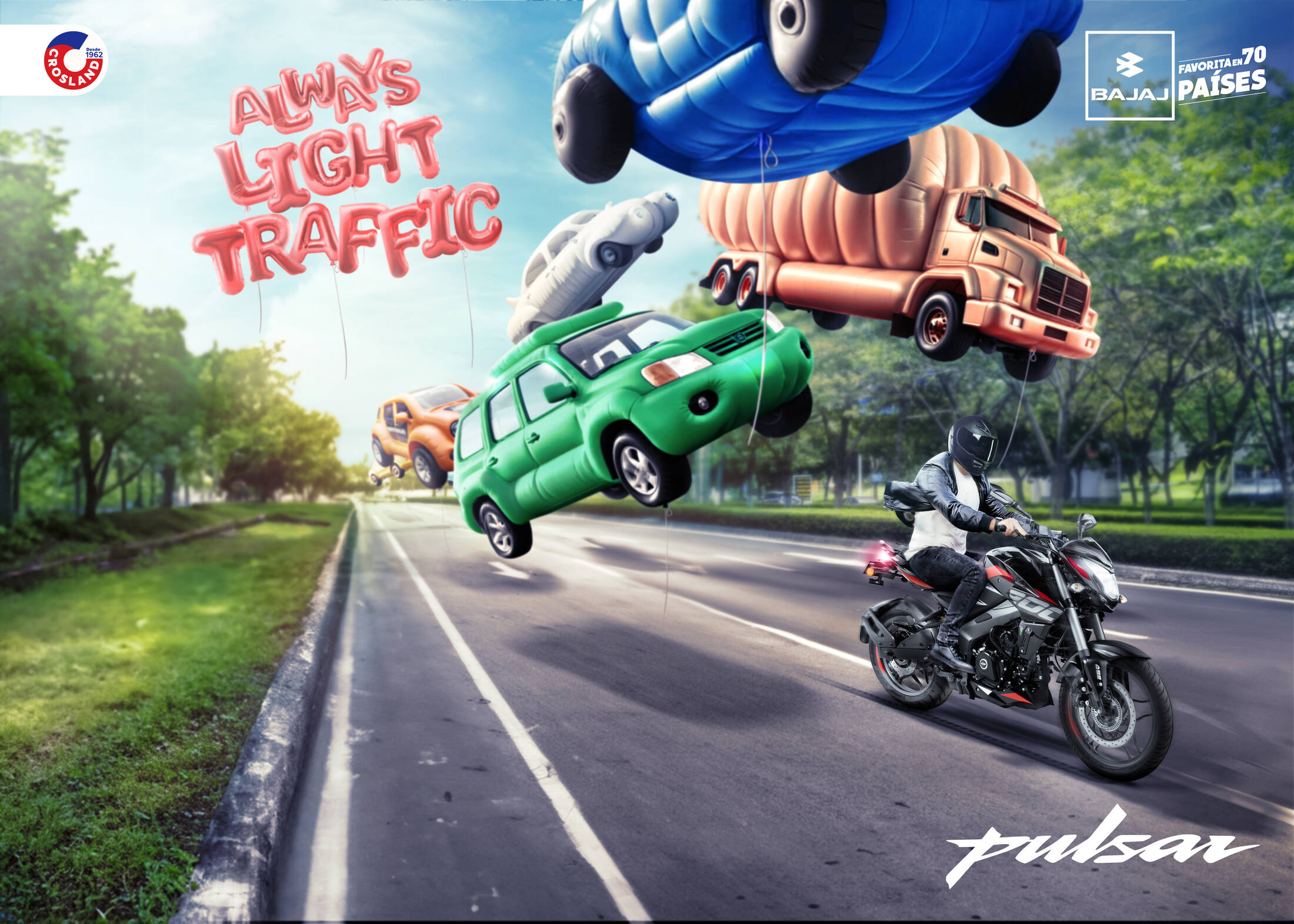 This professional campaign titled 'Light Traffic' was published in Peru in May, 2024. It was created for the brand: Pulsar, by ad agency: El Brandon. This Digital and Print media campaign is related to the Automotive and Personal Transportation, Recreation, Leisure, and Transport industries and contains 1 media asset. It was submitted over 1 year ago by Pierre Rabines of El Brandon.