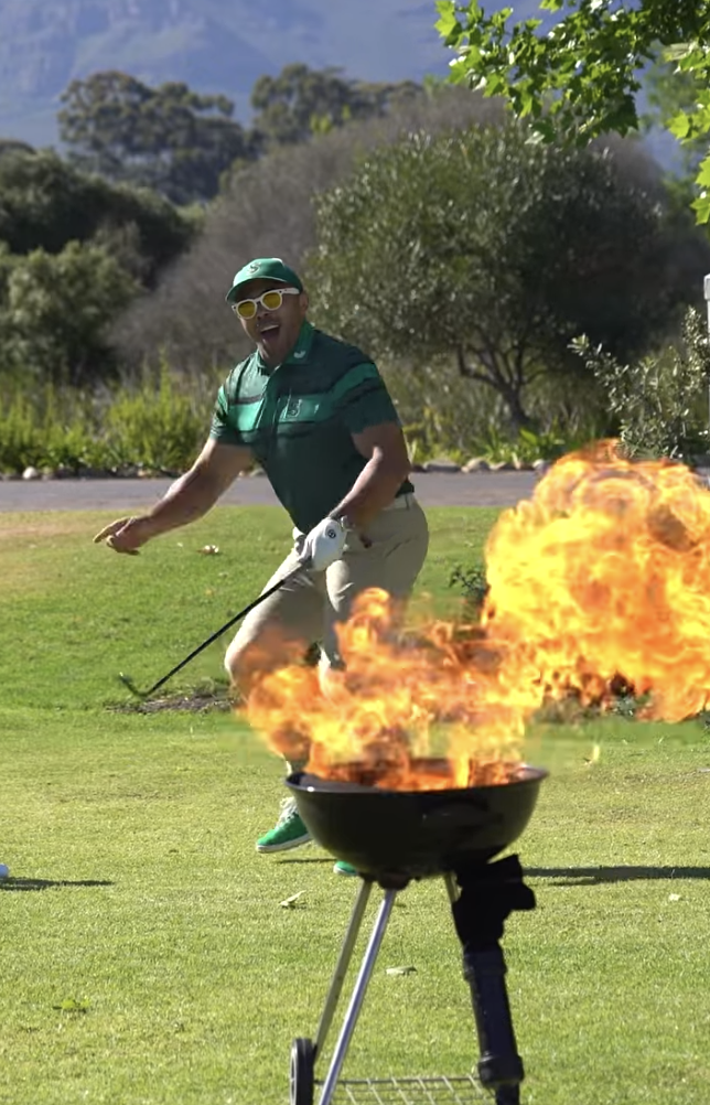 The video - that sees Habana chipping a golf ball into a braai and then challenging broadcasters OG Molefe and Kooks to do the same - has already racked up 800,000 views in 10 hours on TikTok and set to hit 1m in its first 24 hours.