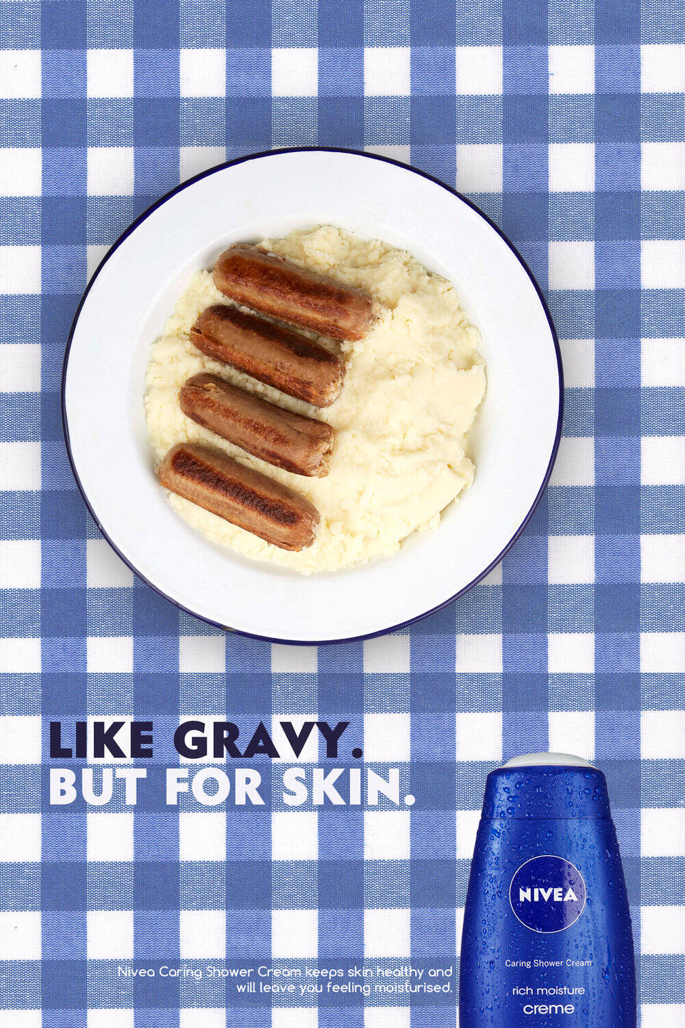 This student campaign titled 'Like gravy, but for skin' was published in United Kingdom in April, 2017. It was created for the brand: Nivea, by ad school: Leeds Arts University. This Print medium campaign is related to the Health industry and contains 1 media asset. It was submitted about 8 years ago.
