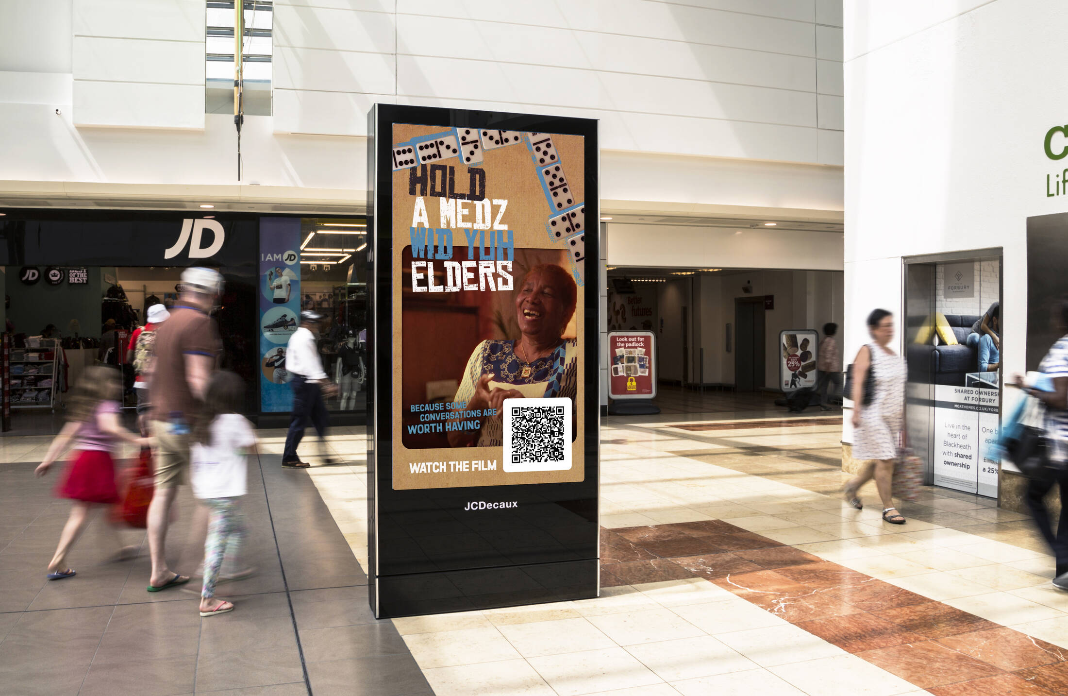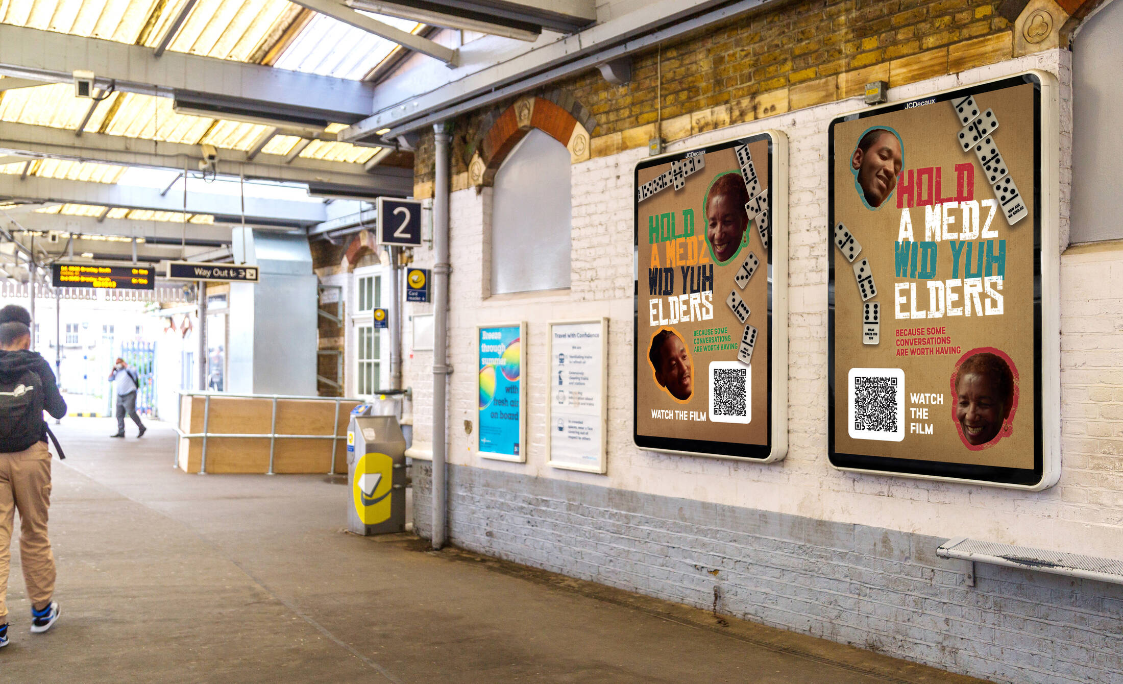 A beautiful bespoke dominoes set used by a grandmother and grandson to break the taboos around health in the Caribbean community. The short film in partnership with University of Cambridge launches in cinema, features an outdoor campaign and bespoke dominoes sets sent across the UK to barbers, churches, cafes and community centres.