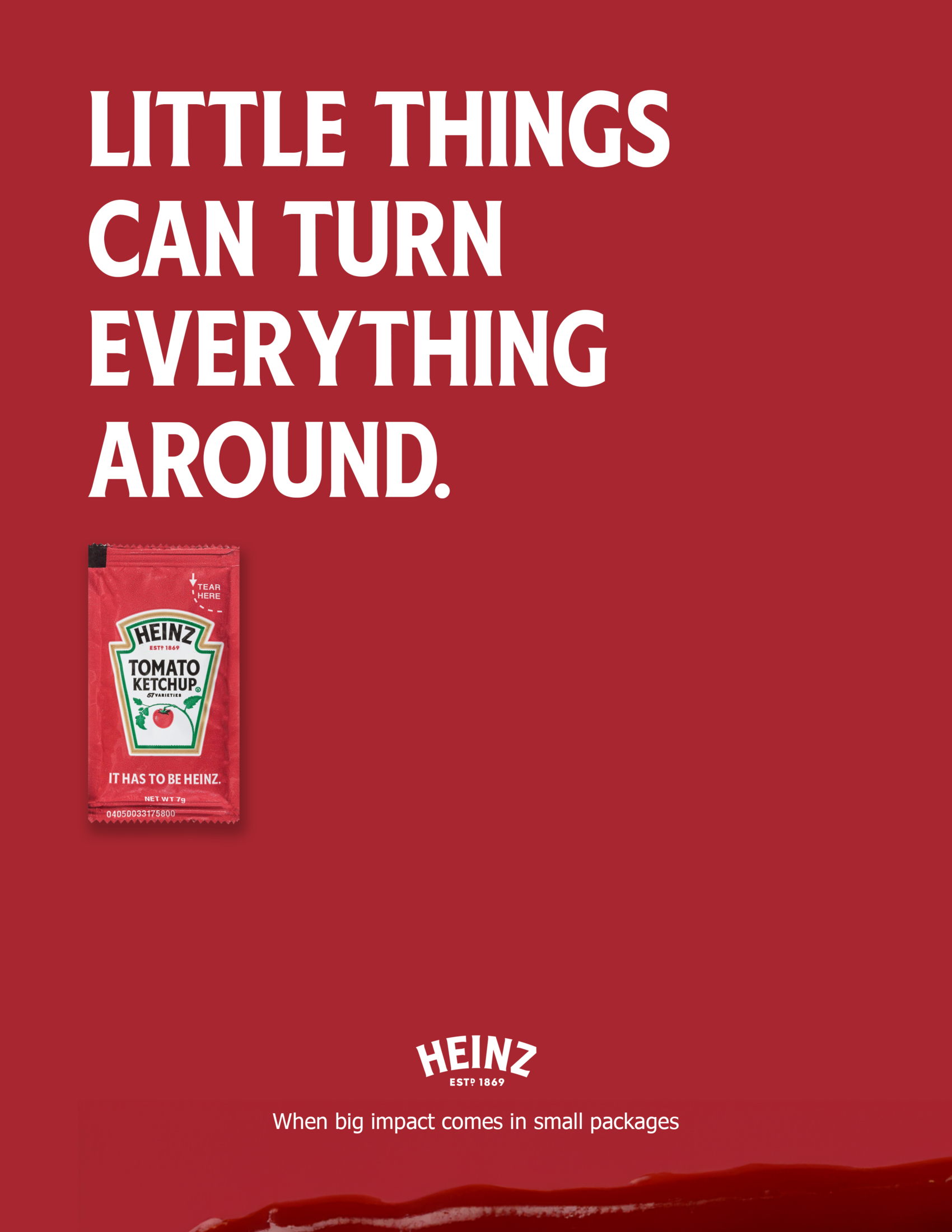 This student campaign titled 'Little Things' was published in Egypt in July, 2023. It was created for the brand: Hienz, by ad school: Cairo Ad School. This Content, OOH Outdoor, and Print media campaign is related to the Food industry and contains 1 media asset. It was submitted over 2 years ago by Regional Manager: Nader Anbar of Dunder Mifflin Paper Company Inc..