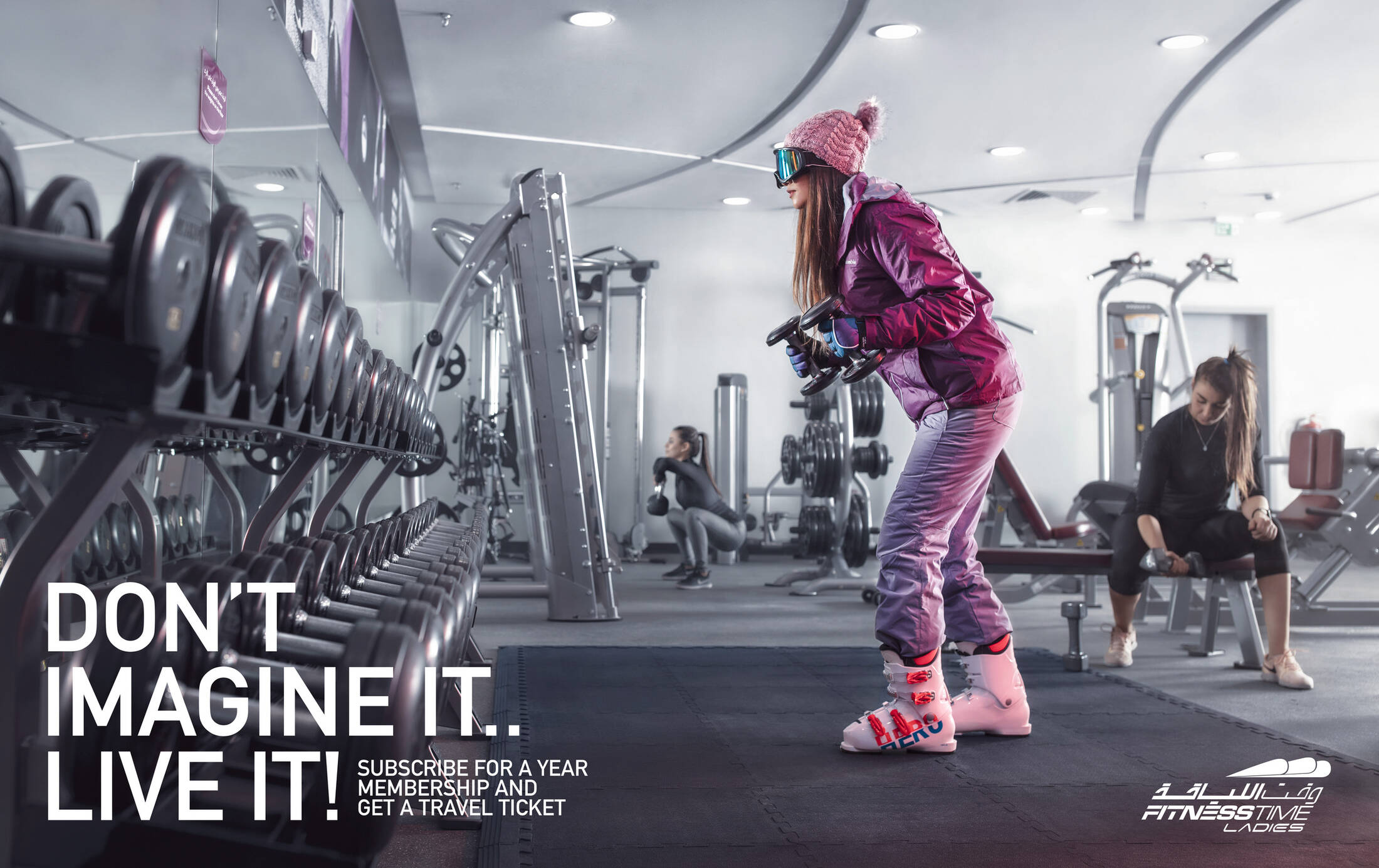 This professional campaign titled 'Live it!' was published in Saudi Arabia in March, 2021. It was created for the brand: Fitness Time, by ad agencies: Grey and WPP. This Print medium campaign is related to the Sports industry and contains 6 media assets. It was submitted over 4 years ago by Creative Director: Chehadi of WHY Riyadh .