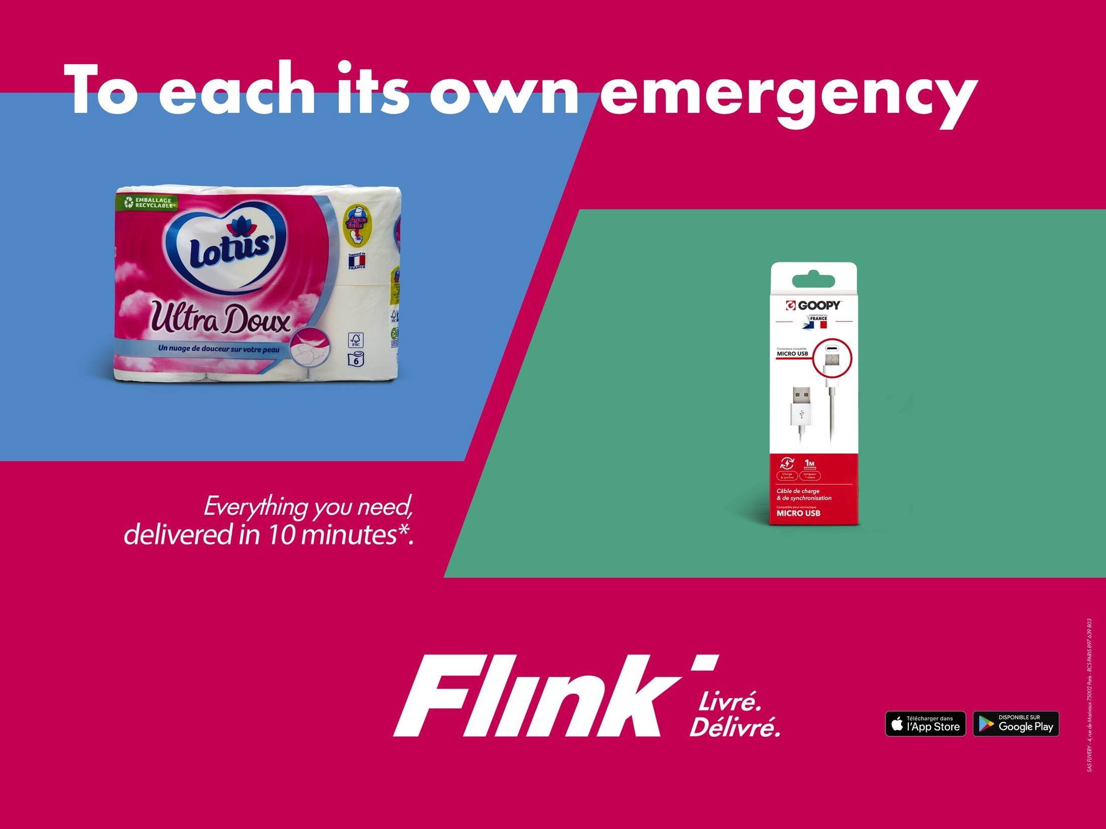 The health crisis has accelerated the trend of home deliveries. The market for the delivery of everyday products is inevitably becoming digitalized, with consumers increasingly sensitive to the need to take orders quickly and easily. It is in this context and based on this observation that FLINK unveils its brand platform with a major objective: to ensure a service solely dedicated to the comfort and simplicity sought by customers. A platform that is expressed through a new brand signature: “Livré Délivré.” A play on the two French words that translate more literally to « Delivered. Delivered (as if to be saved) ». For example, an impromptu dinner with friends and the fridge is desperately empty? Don't have the courage to go and queue at the supermarket after a long day at work? Be delivered in 10 minutes, and free of this burden. The brand’s tagline makes all the more sense in today’s fast delivery business where consumer conscience struggles with the delivery industry’s ethics. FLINK, in addition to freeing consumers from the drudgery of shopping, also frees them from their guilt: the delivery staff are salaried employees with permanent contracts, ride electric bicycles and have rest rooms at their disposal - a commitment that allows it to stand out in the French market today.