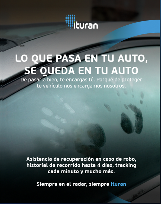 This professional campaign titled 'Lo que pasa en tu auto, se queda en tu auto' was published in Colombia in September, 2025. It was created for the brand: Ituran, by ad agency: 23 Digital Media. This Digital medium campaign is related to the Transport industry and contains 4 media assets. It was submitted 3 months ago.
