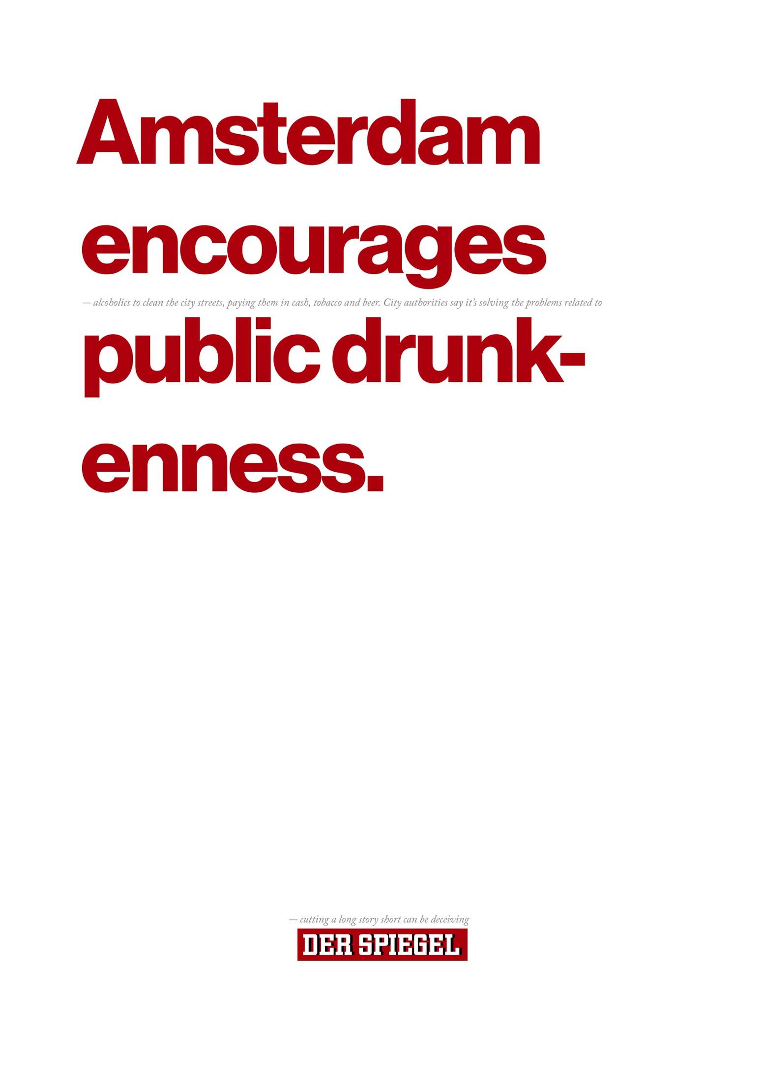 This student campaign titled 'Long story short' was published in Germany in September, 2014. It was created for the brand: Der Spiegel, by ad school: Miami Ad School. This Print medium campaign is related to the Media industry and contains 3 media assets. It was submitted about 11 years ago.