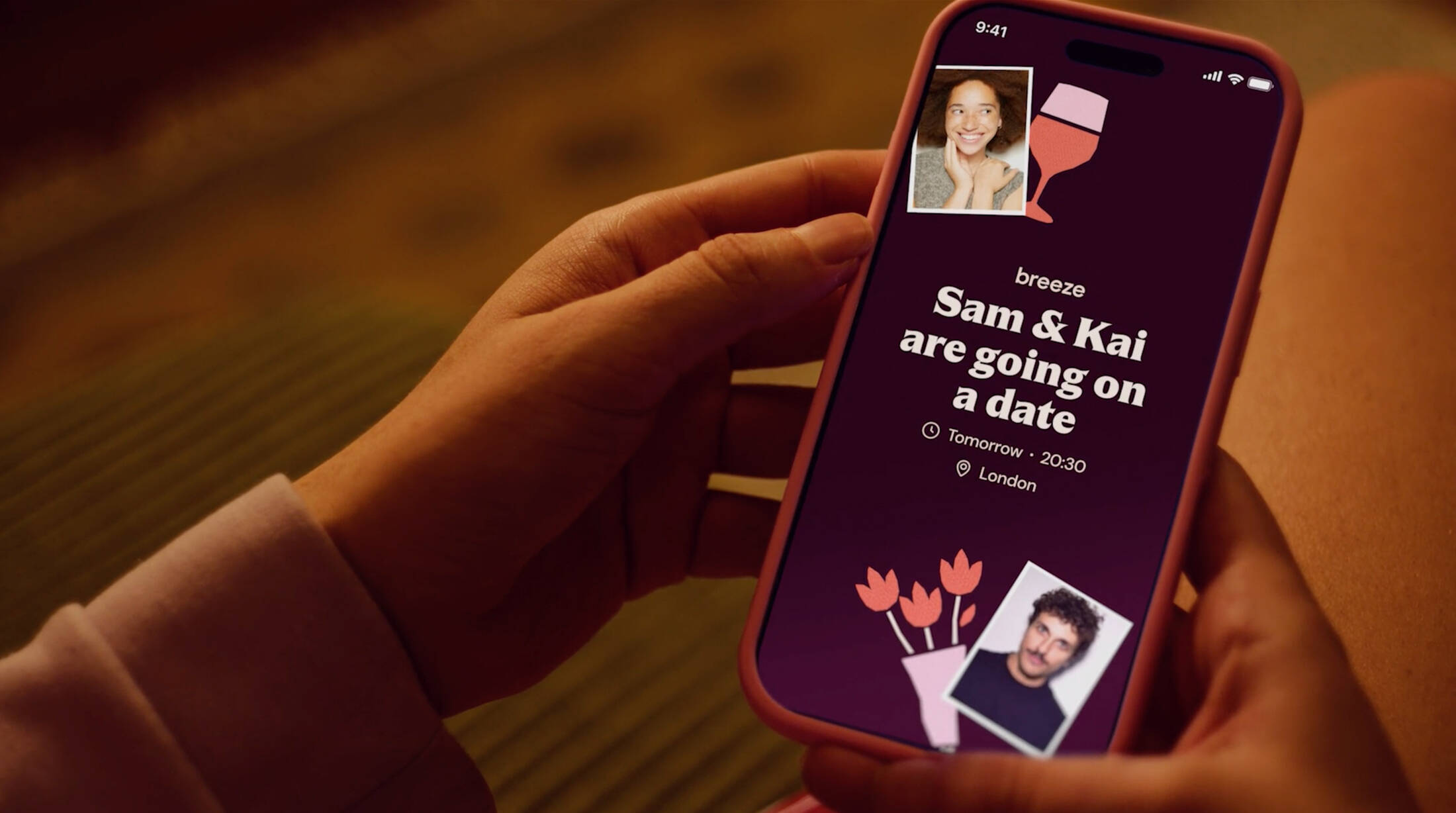 ‘Love Is Worth The Leap’ is led by a cinematic 30-second film in which the main character, Sam, receives a Breeze date notification on her phone. All of a sudden, her cosy bedroom transforms into the top of a towering high-dive platform - a visual manifestation of her fear and anticipation at the prospect of meeting someone face-to-face. Instead of a pool below, she looks down to see a cafe table where her date is waiting for her. Gripped by vertigo, the anticipation builds before she closes her eyes, takes a deep breath, and leaps. The scene cuts back to reality as she takes a seat opposite her date and they share a smile: a moment of real connection.