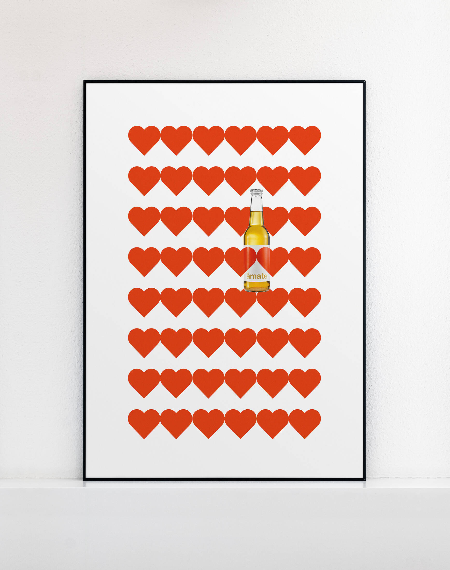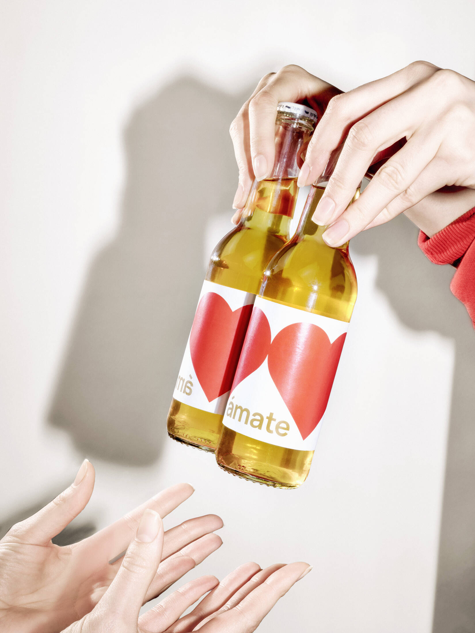 The visuals and animations in the communication of "Ámate" also play with the graphic interpretation of love and self-love. This is particularly evident when more than one bottle comes together: Stringing several "Ámate" bottles together creates a chain of hearts: self-love grows into love for others, which is also passed on.