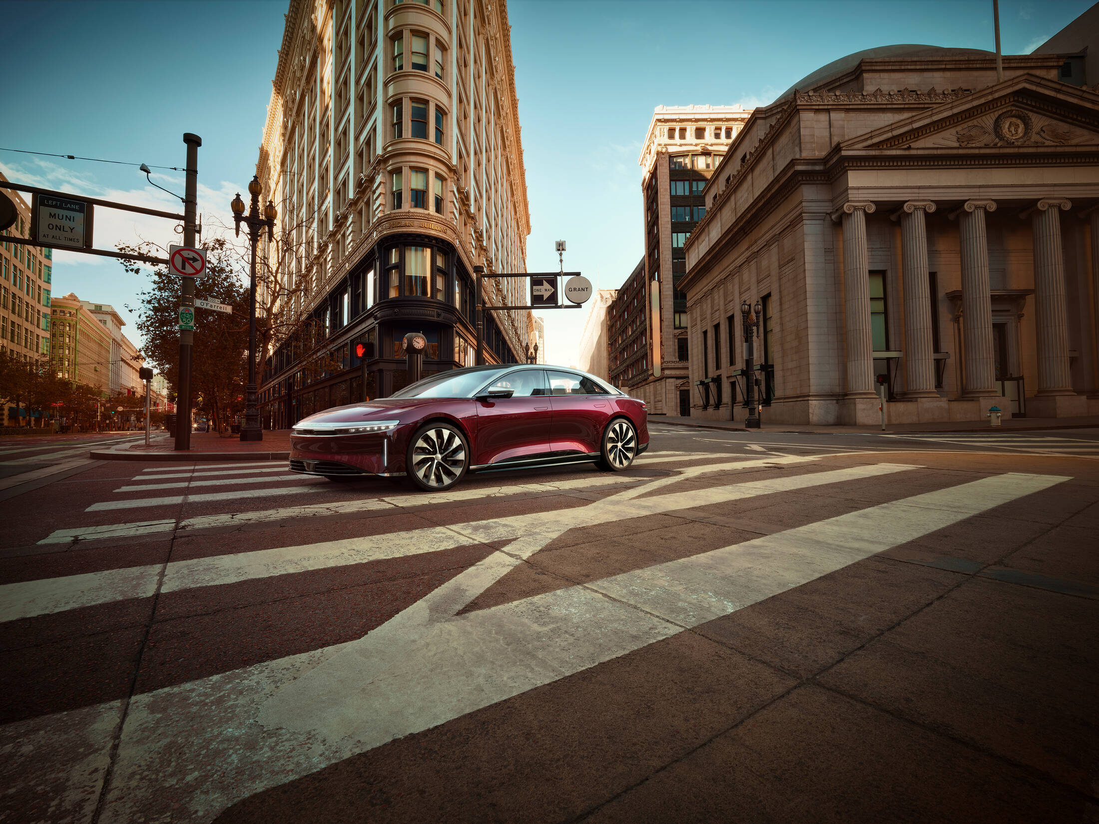The images showcase the Lucid Air in various settings, from the bustling streets of New York City to the iconic landmarks of San Francisco. The attention to detail in both the car and the backplates creates a seamless integration that transports the viewer into a world where the Lucid Air is at home: on the roads of iconic cities.