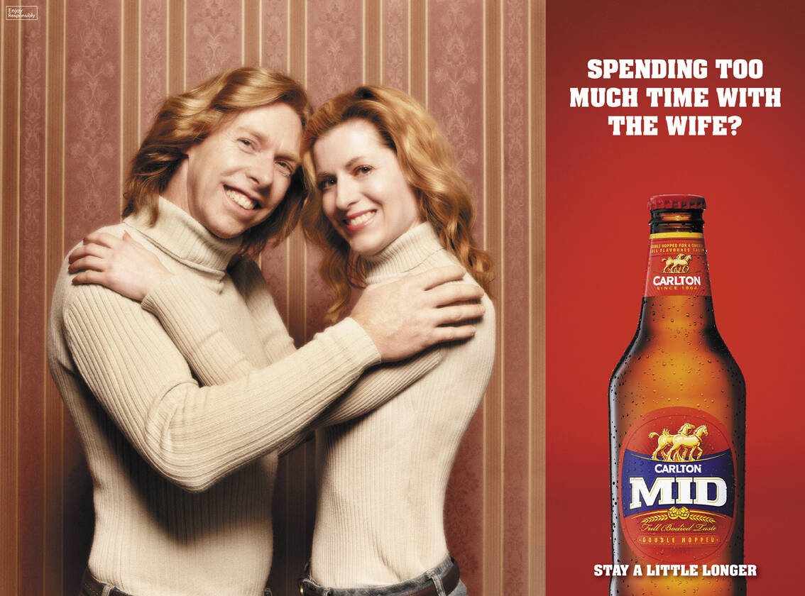 This professional campaign titled 'Lying Down, Tan, Redheads' was published in Australia in November, 2011. It was created for the brand: Carlton, by ad agency: BBDO. This Print medium campaign is related to the Alcoholic Drinks industry and contains 3 media assets. It was submitted about 14 years ago.