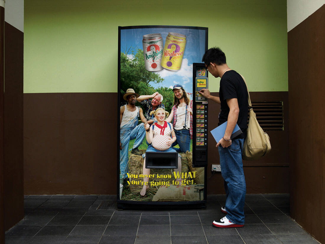 "Anything" & "Whatever" are soft drinks that offer a very unique experience. Every can looks the same on the outside but can contain one of six different flavours. So each time you buy a can you literally don't know what flavour you're going to get. The client wanted JWT Sydney to do something that would really enhance this experience.