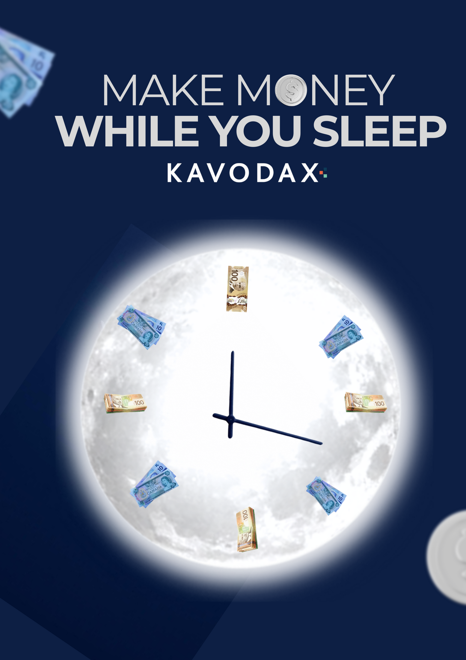 This professional campaign titled 'Make money while you sleep' was published in Canada in March, 2026. It was created for the brand: Kavodax, by ad agency: Newnativ Media. This Digital medium campaign is related to the Finance industry and contains 3 media assets. It was submitted about 5 hours ago.