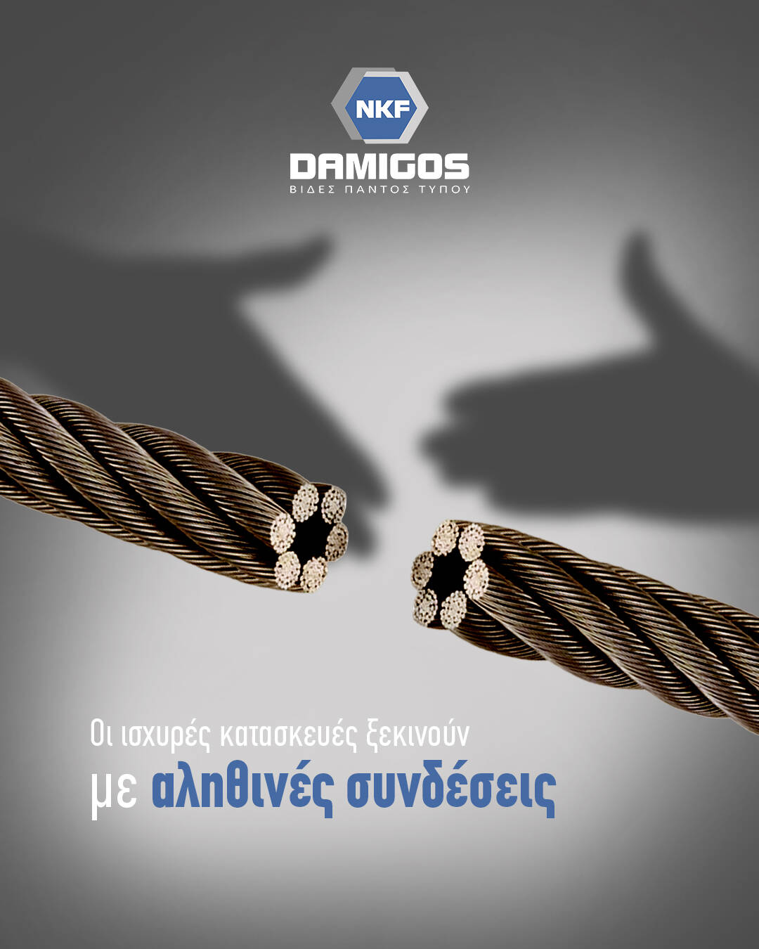 For DAMIGOS (NFK Damigos Bros SA), we turned a screw into a story and a technical detail into a brand asset.