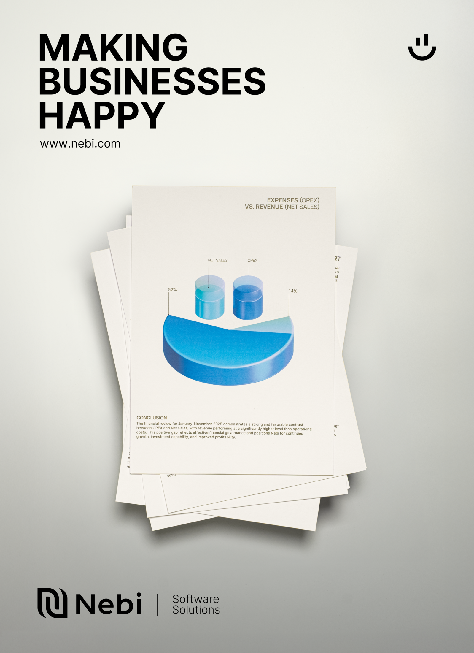 This professional campaign titled 'Making Businesses Happy' was published in Multinational Europe and United States in January, 2026. It was created for the brand: Nebi, by ad agency: Windfor's. This Print medium campaign is related to the Electronics, Technology industry and contains 8 media assets. It was submitted about 3 hours ago.